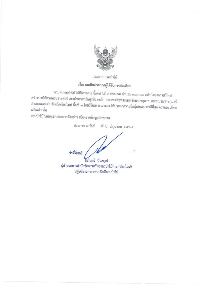 ประกาศ กรมป่าไม้ เรื่อง ยกเลิกประกาศผู้ได้รับการคัดเลือก11 มิถุนายน 2025 ใน ประกาศจัดซื้อจัดจ้าง / ประกาศผู้ชนะการเสนอราคา by adminir