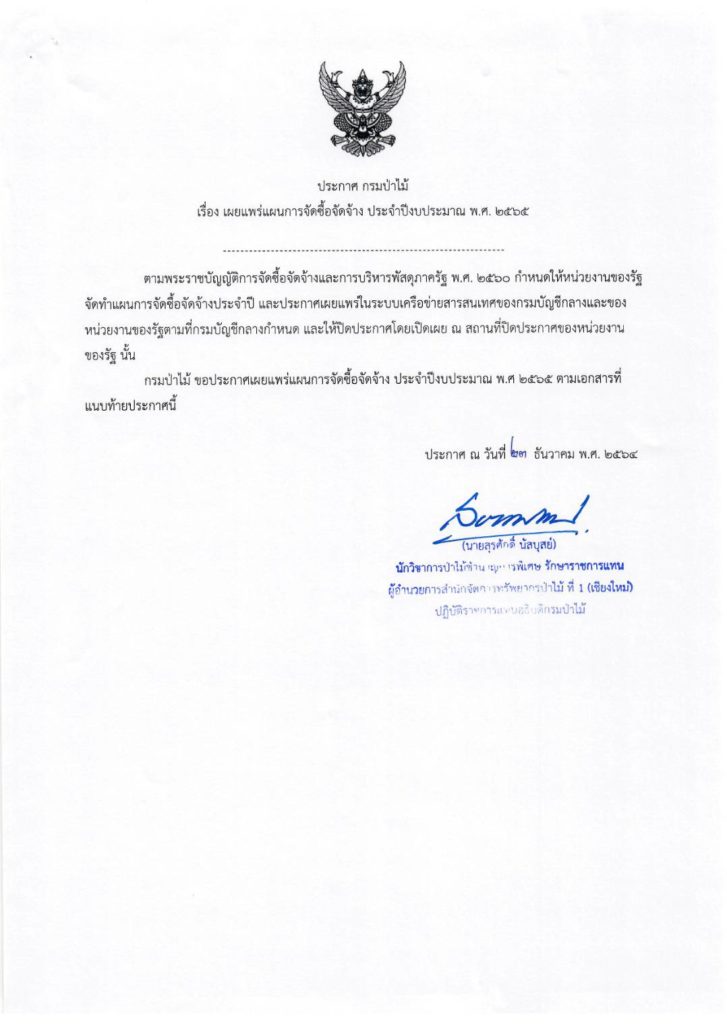 ประกาศ กรมป่าไม้ เรื่อง เผยแพร่แผนการจัดซื้อจัดจ้าง ประจำปีงบประมาณ พ.ศ. ๒๕๖๕23 ธันวาคม 2021 ใน ประกาศ by adminir