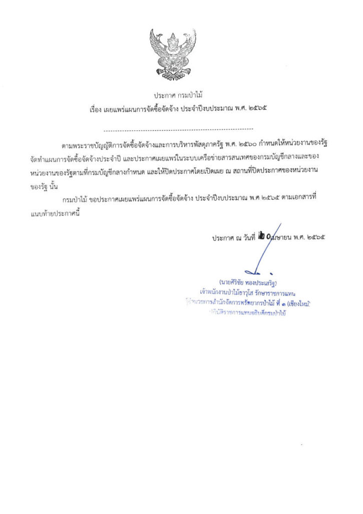 ประกาศ กรมป่าไม้ เรื่องเผยแพร่การจัดซื้อจัดจ้าง ประจำปีงบประมาณ พ.ศ. ๒๕๖๕20 เมษายน 2022 ใน ประกาศ by adminir