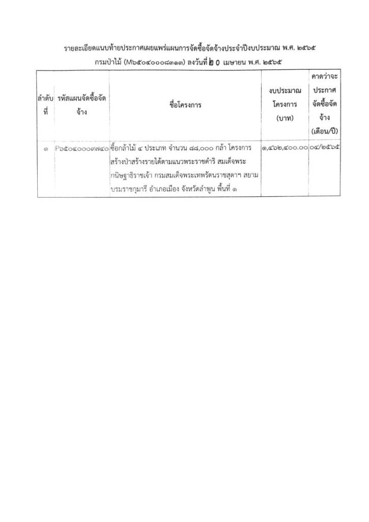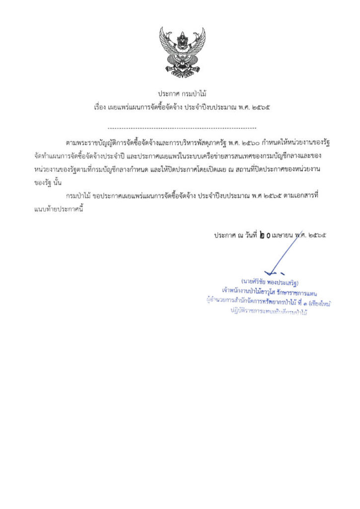 ประกาศ กรมป่าไม้ เรื่องเผยแพร่การจัดซื้อจัดจ้าง ประจำปีงบประมาณ พ.ศ. ๒๕๖๕
