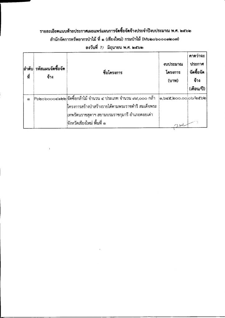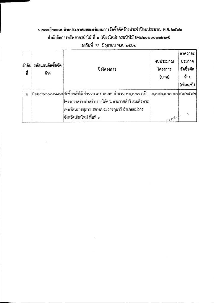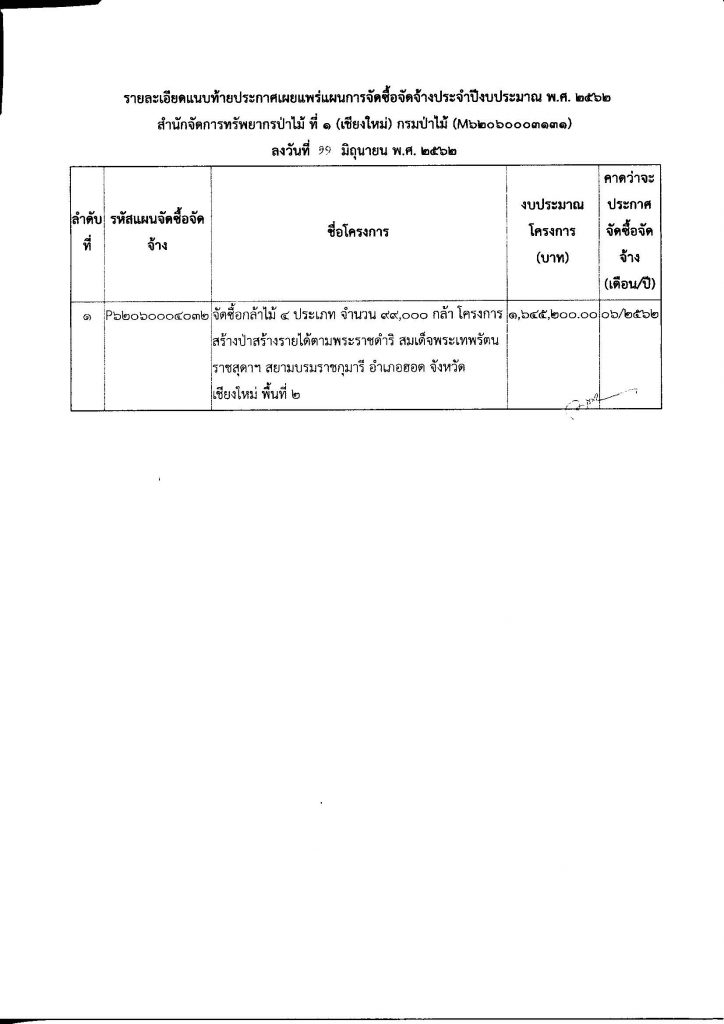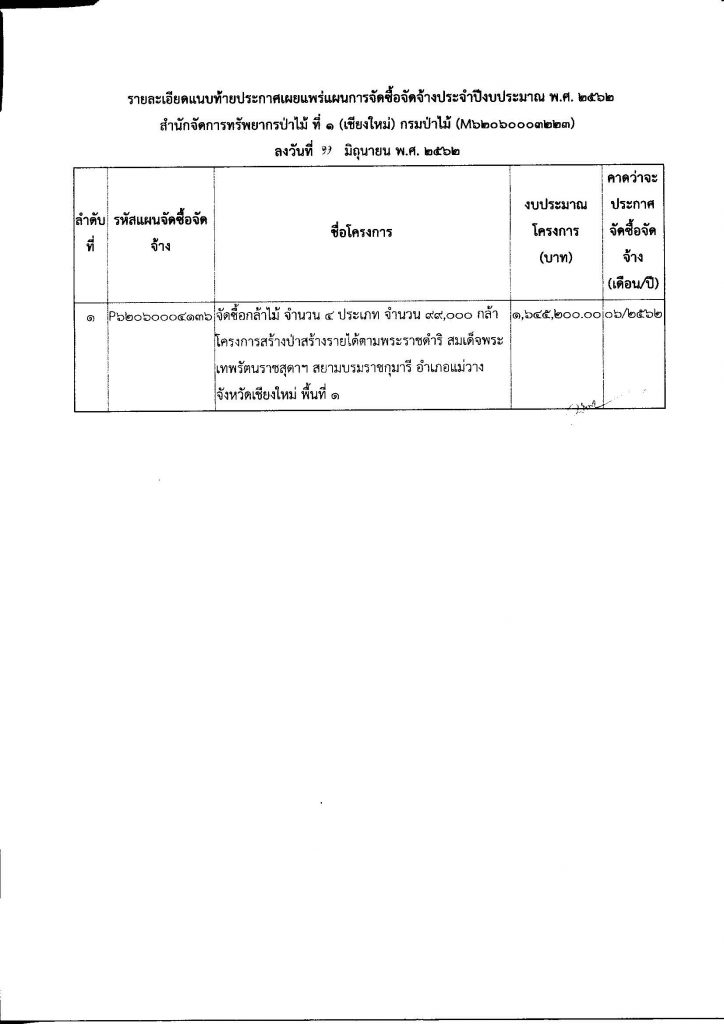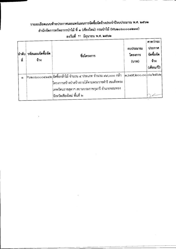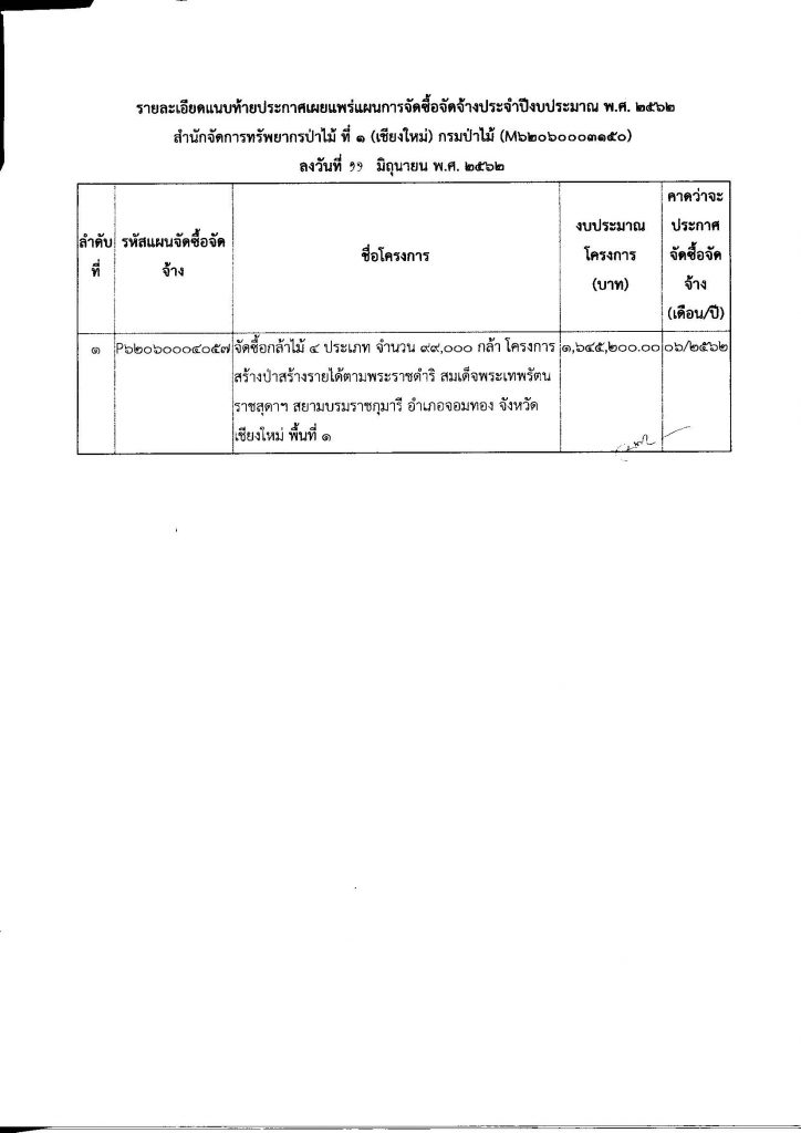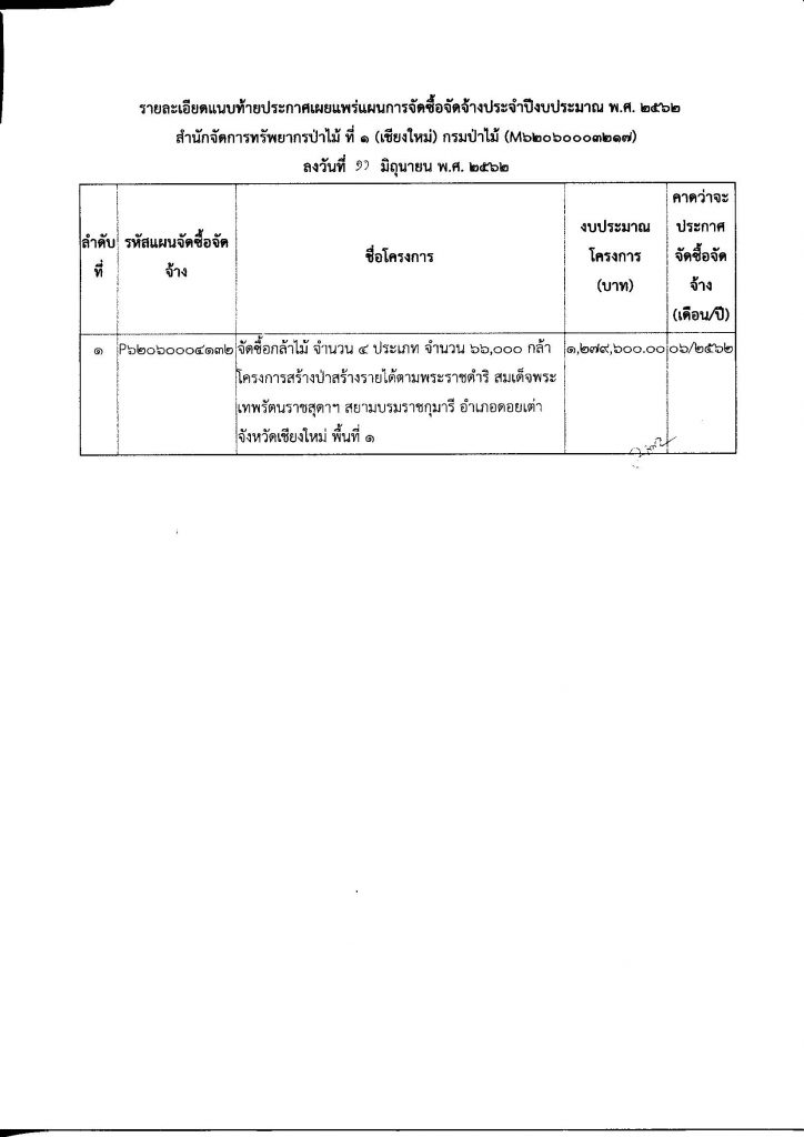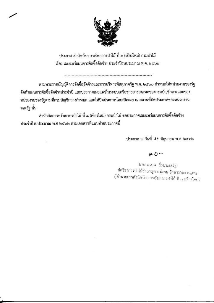 ประกาศ สำนักจัดการทรัพยากรป่าไม้ ที่ 1 (เชียงใหม่) เรื่อง เผยแพร่แผนการจัดซื้อจัดจ้าง ประจำปีงบประมาณ พ.ศ.256211 มิถุนายน 2019 ใน แผนการจัดซื้อจัดจ้าง by adminir
