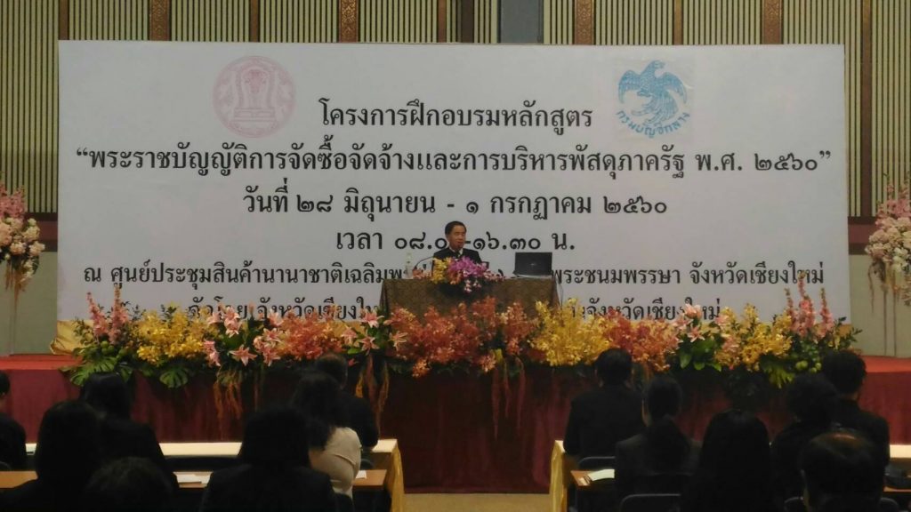นายสมชาย เปรมพาณิชย์นุกูล ผอ.สจป.ที่ 1 (เชียงใหม่) เข้ารับการฝึกอบรมหลักสูตร “พระราชบัญญัติการจัดซื้อจัดจ้างเเละการบริหารพัสดุภาครัฐ พ.ศ.2560” ณ ห้องลีลาวดี ศูนย์ประชุมเเละเเสดงสินค้านานาชาติ เฉลิมพระเกียรติ 7 รอบ พระชนมพรรษา จังหวัดเชียงใหม่ โดยมี นายประจวบ กันธิยะ รอง ผวจ.ชม. เป็นประธานในการเปิดการอบรม ทั้งนี้มี หัวหน้าส่วนราชการในจังหวัดเชียงใหม่ เข้าฝึกอบรม จำนวน 200 คน