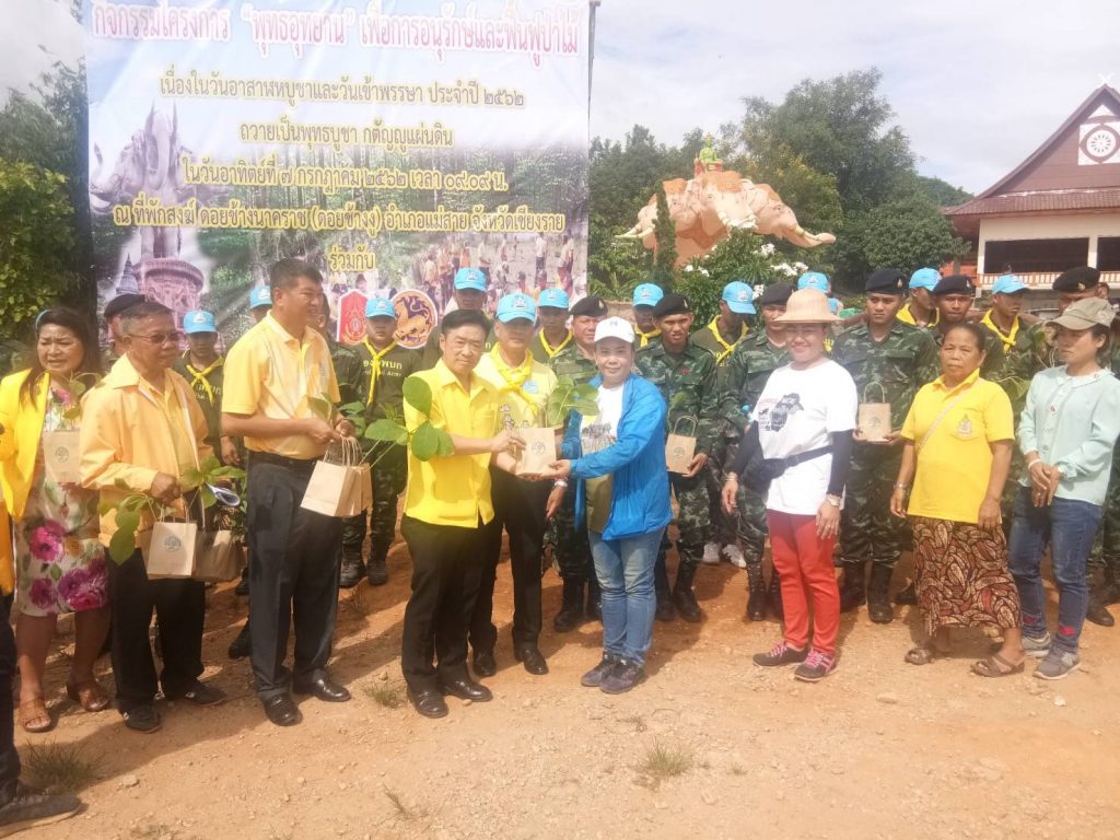 วันที่ 7 กรกฎาคม 2562 เวลา 09.09 น. นายสมศักดิ์ เจียมสงวนวงค์ ผู้อำนวยการสำนักจัดการทรัพยากรป่าไม้ที่2(เชียงราย)เป็นผู้แทนอธิบดีกรมป่าไม้ เป็นประธานเปิดกิจกรรมโครงการพุทธอุทยานเพื่ออนุรักษ์และฟื้นฟูป่าเนื่องในวันอาสาฬหบูชาและวันเข้าพรรษาประจำปี พ.ศ.2562 และประชาสัมพันธ์เชิญชวนผู้ที่เข้าร่วมกิจกรรมลงทะเบียนโครงการ