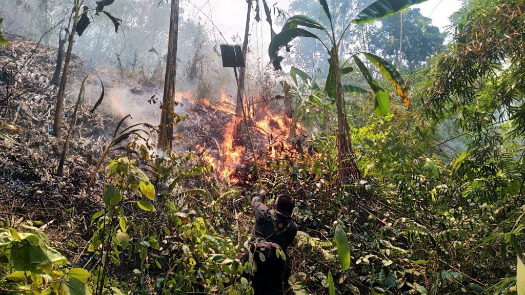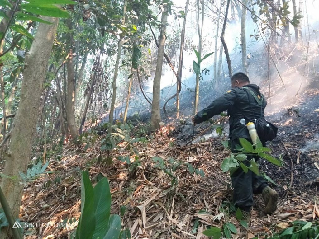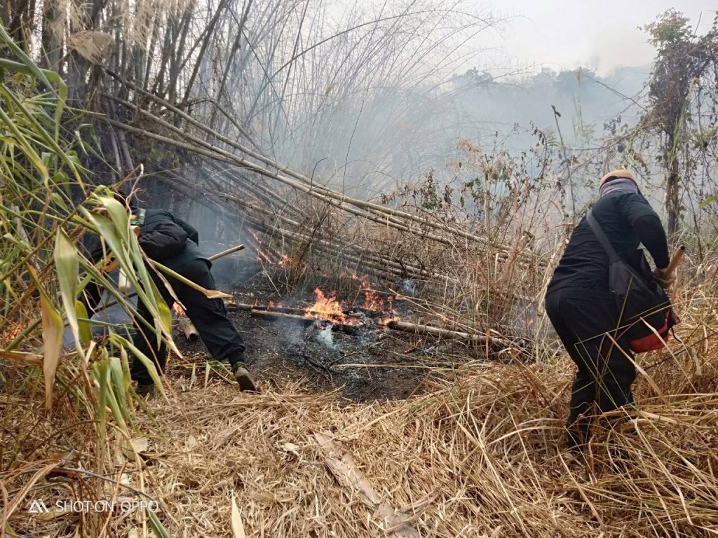 วันนี้ 2 เม.ย.63 เวลา 09.00 น. คณะเจ้าหน้าที่หน่วยป้องกันและพัฒนาป่าไม้เวียงเชียงรุ้ง นำโดยนายจรัล ไชยจินดา พนักงานพิทักษ์ป่า ส 3 และเจ้าหน้าที่ประจำหน่วยฯได้ออกลาดตะเวนในพื้นที่ป่าบ้านป่าซาง ม.9 ต.ป่าซาง อ.เวียงเชียงรุ้ง จ.เชียงราย ตรวจมาถึงอ่างเก็บน้ำบ้านป่าซาง ได้ตรวจพบไฟใหม้ พื้นที่ป่าบริเวณหลังอ่างเก็บน้ำฯ คณะเจ้าหน้าที่จึงได้ร่วมกันเข้าดับไฟและได้จับค่าพิกัดดังนี้ 47Q 620199 UTM 2215958 เริ่มดับเวลา 09.00 น.คณะเจ้าหน้าที่ได้ช่วยกันดับไฟดับได้เป็นบางส่วน ซึ่งในพื้นที่มีเชื้ิอเพลิงหนาแน่นยากต่อการดับไฟในครั้งนี้และยังมีลมแรกมากจึงทำให้ไฟขยายวงกว้างออกไปประกอบกับเป็นภูเขาสูงชันซึ่งจะเกิดเป็นอันตรายต่อเจ้าหน้าที่ผู้ปฎิบัติงานจึงได้เผ้าระวังไฟมิให้ลุกลามไปมากกว่านี้ ผลการปฎิบัติงานจะได้รายงานให้ผู้บังคับชาทราบต่อไป