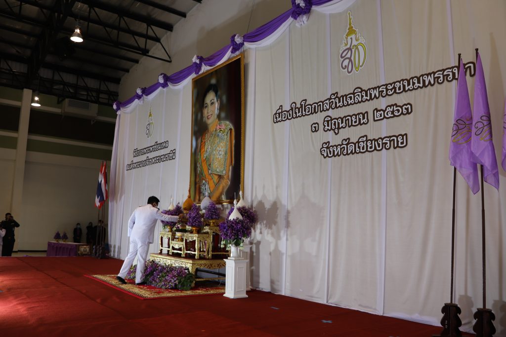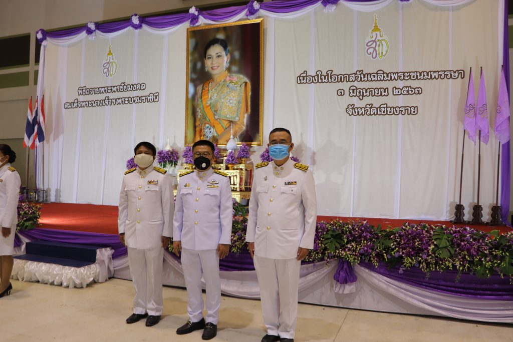 นายสมศักดิ์ สกุลวรรณรักษ์ ผู้อำนวยการสำนักจัดการทรัพยากรป่าไม้ที่ 2 (เชียงราย) พร้อมด้วยข้าราชการในสังกัดฯ เข้าร่วมพิธีเนื่องในโอกาสวันเฉลิมพระชนมพรรษาสมเด็จพระนางเจ้าฯ พระบรมราชินี ประจำปีพุทธศักราช 2563 ในการร่วมลงนามถวายพระพรชัยมงคลในสมุดลงนามถวายพระพรชัยมงคล ณ ศูนย์ประชุมและแสดงสินค้านานาชาติ GMS จังหวัดเชียงราย โดยมีนายประจญ ปรัชญ์สกุล ผู้ว่าราชการจังหวัดเชียงรายเป็นประธานในพิธี