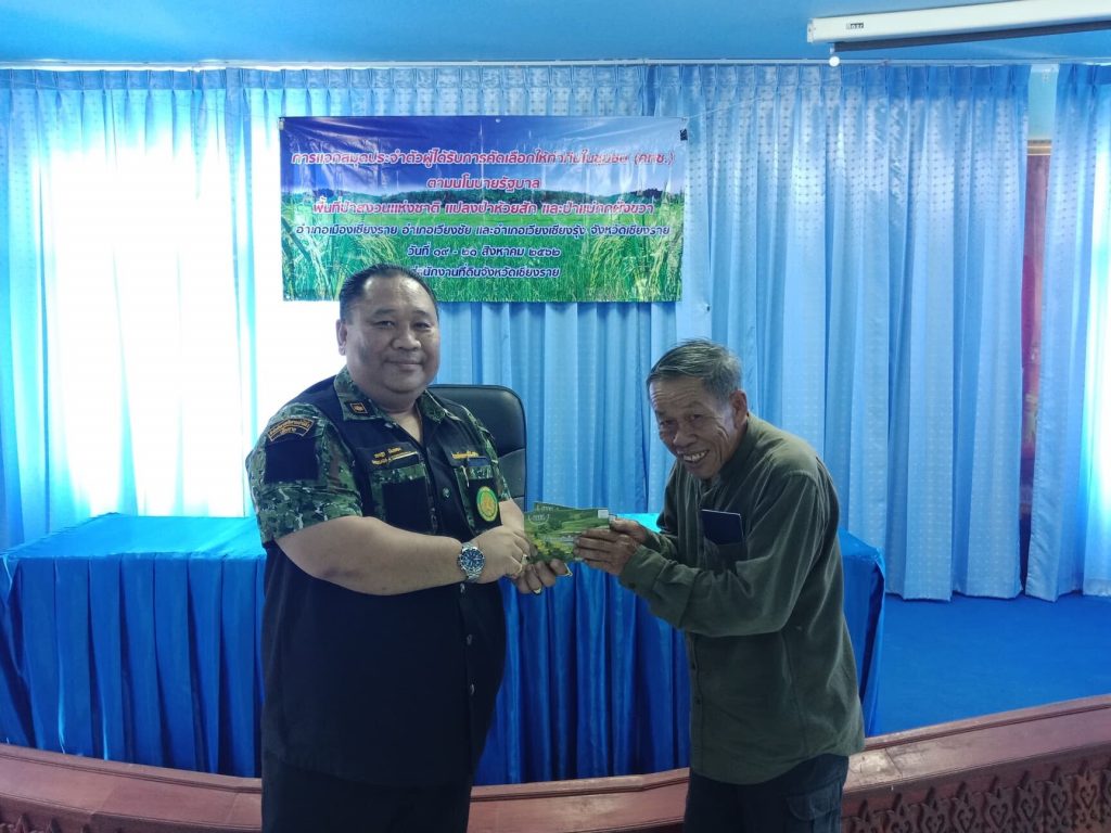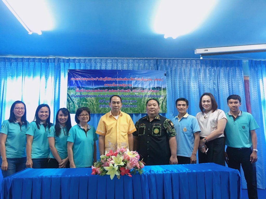 วันที่ 19 สิงหาคม 2562 เวลา 09.30 น. นายเจษฎา เงินทอง เจ้าพนักงานป่าไม้อาวุโส ผู้อำนวยการส่วนจัดการที่ดินป่าไม้ ได้เข้าร่วมการแจกสมุดประจำตัว ผู้ได้รับการคัดเลือกให้ทำกินในชุมชน(คทช.) ตามนโยบายรัฐบาล พื้นที่ป่าสงวนแห่งชาติแปลงป่าห้วยสัก และป่าแม่กกฝั่งขวา ณ ห้องประชุมองค์การบริหารส่วนตำบลป่าซาง และองค์การบริหารส่วนตำบลทุ่งก่อ อำเภอเวียงเชียงรุ้ง จังหวัดเชียงราย