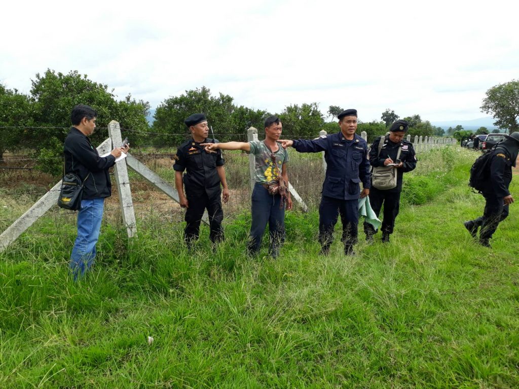 ได้ร่วมกันจับกุม นายหล้า ไม่ทราบนามสกุล นายอาลี ไม่ทราบนามสกุล และนายทะไม้ทราบนามสกุล ทั้งหมดเป็นชาวเมียนมาร์ และตรวจยึดพื้นที่สวนส้ม จำนวน 239-0-74 ไร่ โดยกล่าวหาตามพ.ร.บ.ป่าไม้ พ.ศ.2484 ม.54 ฐาน ก่นสร้าง ยึดถือครอบครอง แผ้วถาง หรือกระทำการใดๆ อันเป็นการทำลายป่า โดยมิได้รับอนุญาต และพ.ร.บ.ป่าสงวนแห่งชาติ พ.ศ.2507 ม.14 ฐาน ยึดถือครอบครอง ทำประโยชน์หรืออยู่อาศัยในที่ดิน ก่นสร้างแผ้วถาง หรือทำด้วยประการใดๆ โดยมิได้รับอนุญาตจากพนักงานเจ้าหน้าที่ เหตุเกิดที่ สวนส้มบริเวณทิศใต้บ้านสันกู่ หมู่ 4 ต.แม่เจดีย์ อ.เวียงป่าเป้า จ.เชียงราย ได้รวบรวมพยานหลักฐาน และนำตัวผู้ถูกจับ ส่งพนักงานสอบสวนดำเนินคดีแล้วที่สภ.แม่เจดีย์ จ.เชียงราย ตาม ปจว.ข้อ2 เวลา 19.30 น. คดีที่ 130/60 ลว. 22 มิ.ย.60