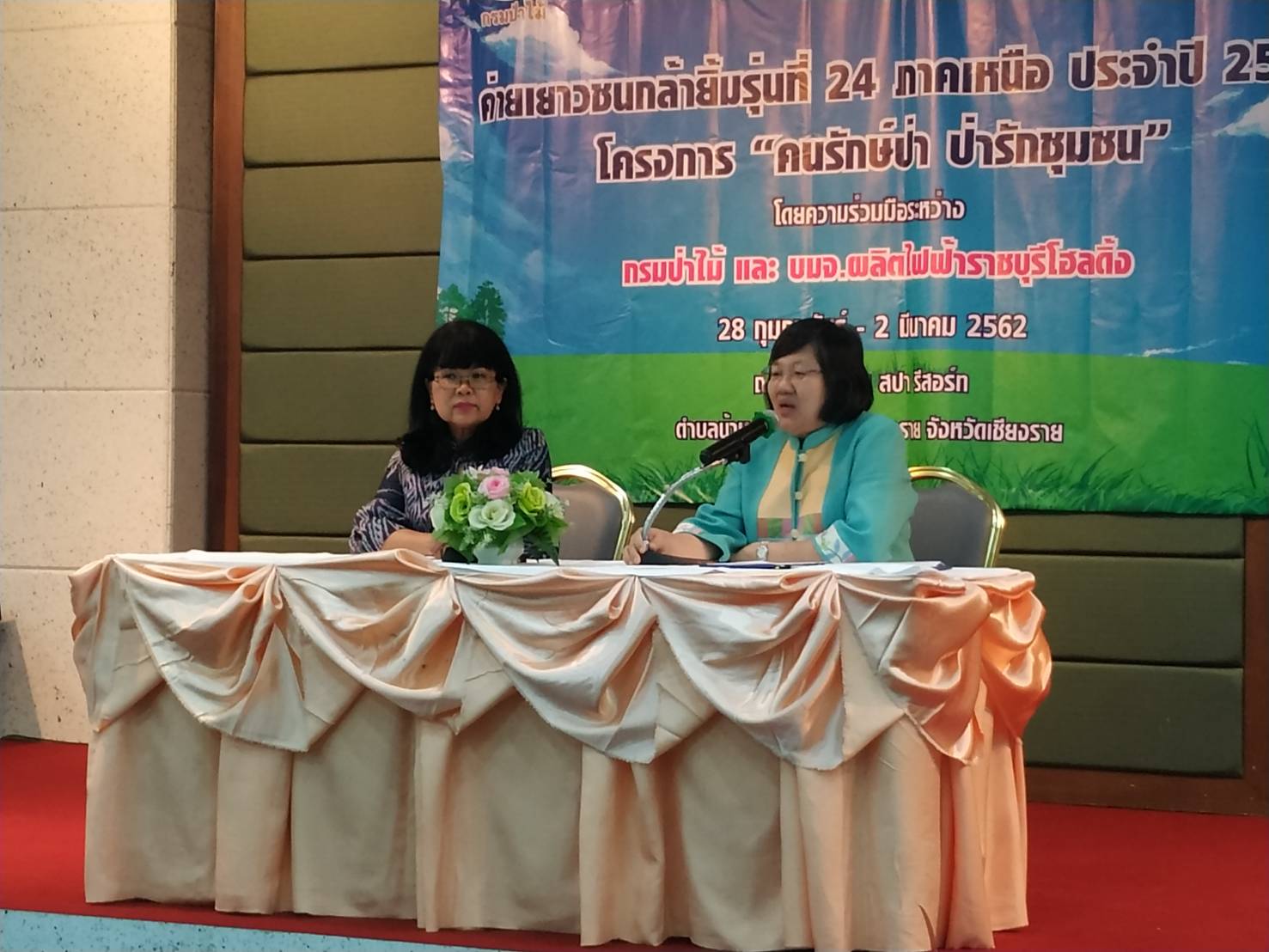 นายสมศักดิ์ เจียมสงวนวงค์ ผู้อำนวยการสำนักจัดการทรัพยากรป่าไม้ที่ 2 (เชียงราย) ร่วมพิธีเปิดโครงการ “คนรักษ์ป่า ป่ารักชุมชน” ค่ายเยาวชนกล้ายิ้ม รุ่นที่ 24 ภาคเหนือ ประจำปี 2562 ณ ห้องประชุมสักทอง ทีค การ์เด้น สปา รีสอร์ท ตำบลบ้านดู่ อำเภอเมืองเชียงราย จังหวัดเชียงราย โดยมีนางอำนวยพร ชลดำรงค์กุล รองอธิบดีกรมป่าไม้ เป็นประธานในพิธีเปิด