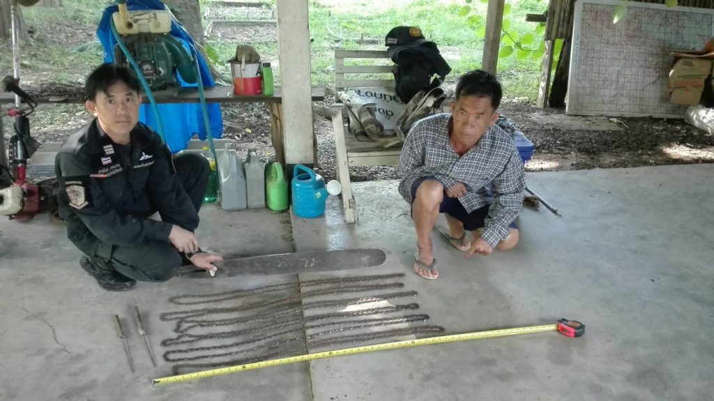 1.บ้านเลขที่ 117 หมู่6 ต.แม่สรวย อ.แม่สรวย จ.เชียงราย มีนายพิพบ อินชัย อายุ50ปี เป็นเจ้าของบ้่าน ตรวจค้นพบเครื่องเลื่อยโซ่ยนต์ชุกช่อนอยู่ในบ้าน จำนวน 2 เครื่อง โซ่เลื่อยยนต์ จำนวน 9 เส้น และบาร์ จำนวน 2 อัน คณะ จนท.ได้สอบถามใบอนุญาตฯ เเล้วนายพิพบ อินชัย แจ้งว่าไม่มีใบอนุญาตฯแต่อย่างใด