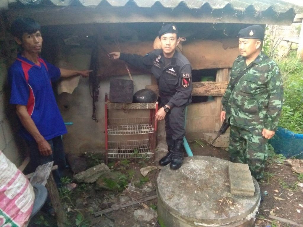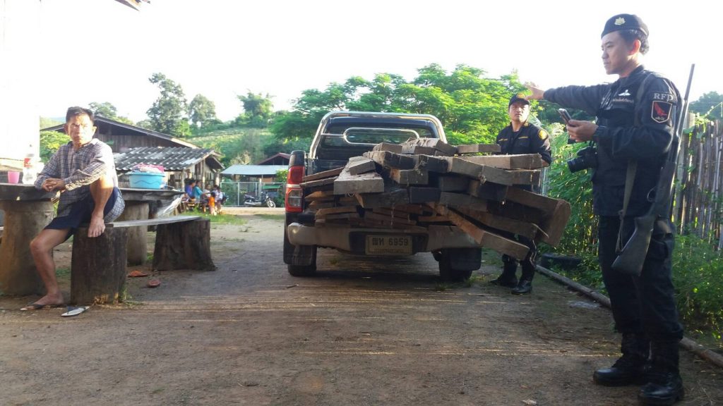 2.บ้านเลขที่ 55 หมู่6 ต.แม่สรวย อ.แม่สรวย จ.เชียงราย พบนายประพันธ์ กันทะสีมา อายุ 58 ปี เป็นเจ้าของบ้าน ผลการตรวจค้นพบไม้สักแปรรูป และไม้กระยาเลยแปรรูปชุกช่อนอยู่บริเวณใต้ถุนบ้านตรวจสอบสภาพไม้เป็นไม้แปรรูปหวงห้ามและผิดกฎหมาย ไม่มีรูปรอยดวงตราของรัฐตีประทับบนหัวไม้แต่อย่างใด จึงได้ตรวจนับไม้ทั้งหมดรวมจำนวน 64 แผ่น ปริมาตร 1.00 ลบม. และได้ตรวจสอบข้างฝาบ้านพบโซ่เลื่อยยนต์ จำนวน 6 เส้น และบาร์ยาว 32 นิ้ว จำนวน 1 อัน