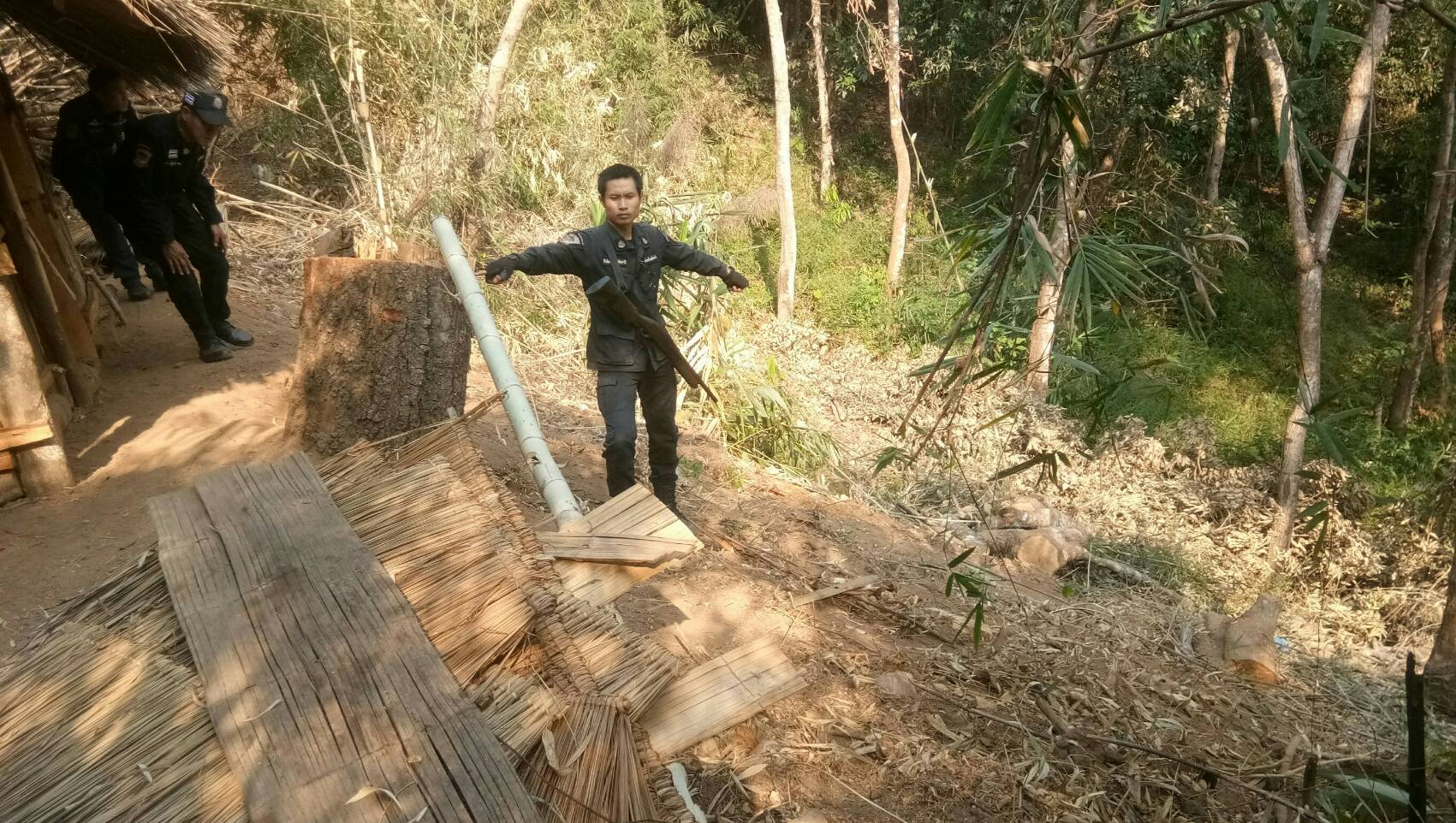 ร่วมกับผูใหญ่บ้านม้งแปดหลัง หมู่ 12 ต.เทอดไทย อ.แม่ฟ้าหลวง จ.เชียงรายได้ร่วมกันตรวจสอบข้อเท็จจริงเกี่ยวกับการติดตามการเปลี่ยนแปลงพื้นที่ป่า ในท้องที่ตำบลเทอดไทย อำเภอแม่ฟ้าหลวง จังหวัดเชียงราย รหัสตามระบบพิทักษ์ไพร G-CRI – 2561-0018 ตรวจพบการกระทำผิด 1 ราย ไม่ได้ตัวผู้กระทำผิด ตรวจพบพื้นที่ป่าที่ถูกบุกรุกยึดถือครอบครองทำประโยชน์ จำนวน 1-1-96 ไร่ ตรวจยึดได้ไม้กระยาเลยแปรรูป จำนวน 5 แผ่น ปริมาตร 0.07 ลบม. และไม้กระยาเลยท่อน จำนวน 6 ท่อน ปริมาตร 0.19 ลบม.