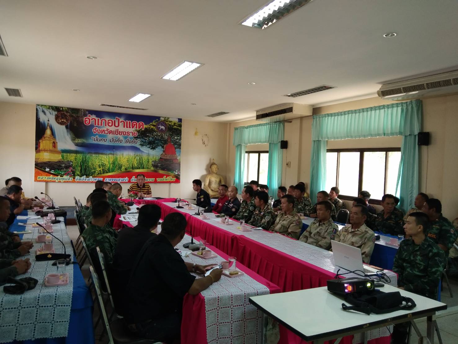 หน่วยป้องกันและพัฒนาป่าไม้ป่าแดด, หน่วยป้องกันรักษาป่าที่ ชร.10 (ป่าแดด)ร่วมกับ เจ้าหน้าที่ฝ่ายปกครอง อำเภอป่าแดด, เจ้าหน้าที่ทหาร, เจ้าหน้าที่อุทยานแห่งชาติแม่ปืม, เจ้าหน้าที่เขตห้ามล่าสัตว์ป่าทับพญาลอ, หัวหน้าส่วนราชการ , ผู้นำท้องถิ่น ในพื้นที่ อำเภอป่าแดด และ เจ้าหน้าที่ชุดปฏิบัติการดับไฟป่า อำเภอป่าแดด รับการตรวจเยี่ยม ติดตามสถานการณ์ไฟป่าและหมอกควันในพื้นที่ อำเภอป่าแดด โดย นายภาษเดช หงส์ลดารมภ์ รองผู้ว่าราชการจังหวัดเชียงราย และคณะ ณ ห้องประชุมที่ว่าการอำเภอป่าแดด จังหวัดเชียงราย ส่วนราชการ ผู้เกี่ยวข้องชี้แจงภารกิจ และสถานการณ์ไฟป่า และหมอกควันในพื้นที่ และรายงานผลการปฏิบัติงาน