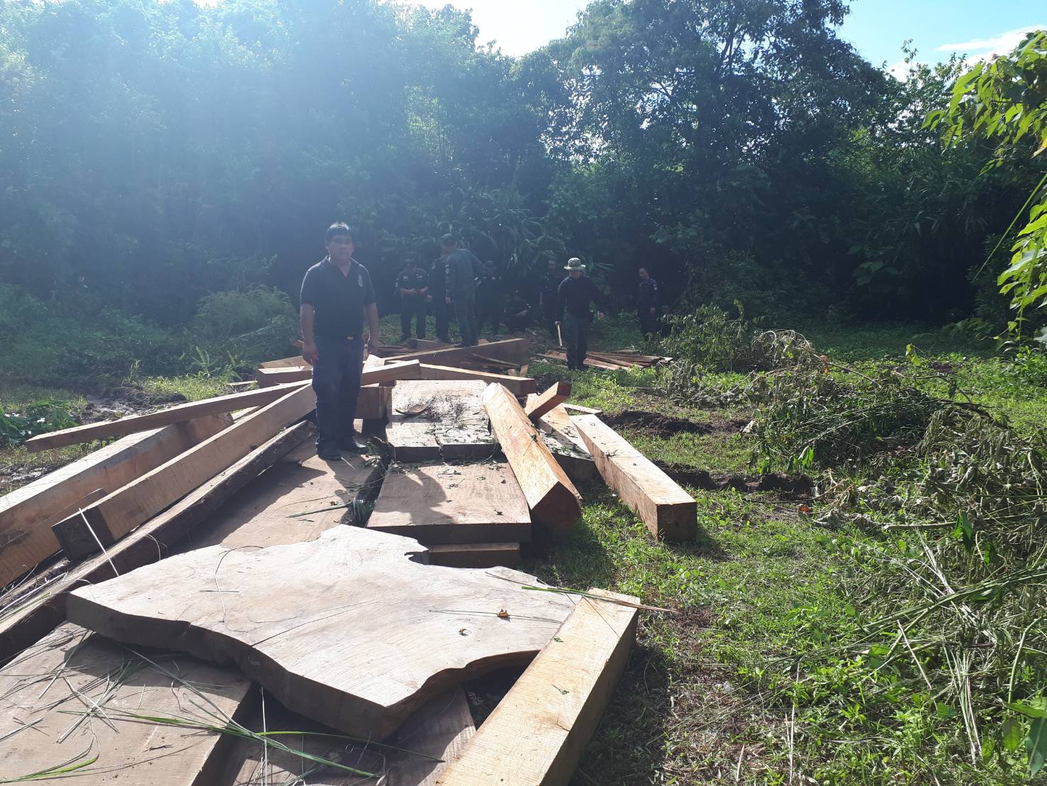 คณะเจ้าหน้าที่ประกอบด้วย ผู้อำนวยการโดย นายทนงศักดิ์ ธรรมโม ผู้อำนวยการส่วนป้องกันและควบคุมไฟป่่า, เจ้าหน้าที่สายตรวจปราบปราม การกระทำผิดว่าด้วยกฎหมายป่าไม้ สายที่ 1 ประจำสำนักจัดการทรัพยากรป่าไม้ที่ 2 (เชียงราย) นำโดยนายโกศล พิมสาร เจ้าพนักงานป่าไม้ชำนาญงาน, คณะเจ้าหน้าที่หน่วยป้องกันรักษาป่าที่ ชร.8 (พญาเม็งราย)นำโดย นายเสกสรรค์ สุนทรนาค หัวหน้าหน่วยฯ, เจ้าหน้าที่ บก.ปทส.อำนวยการโดย พ.ต.อ.พิบูลย์ เวียงจันทร์ ผกก.บก.ปทส. และ พ.ต.ท.โรจน์ศักดิ์ นัยผ่องศรี สว.ท.ท.4 บก.ปทส, เจ้าที่สายตรวจปราบปรามประจำสำนักจัดการบริหารพื้นที่อนุรักษ์ที่ 15 (เชียงราย)นำโดย นายสันธนะ ศรีเปาวนะ หัวหน้าสายตรวจปราบปรามประจำสำนัก, นายพิกัน พรมรัตน์ ผู้ใหญ่บ้าน หมู่ที่ 2 ตำบลดอนศิลา อำเภอเวียงชัย จังหวัดเชียงราย โดยได้รับแจ้งจากพลเมืองดีทางโทรศัพท์ ว่าพื้นที่ บ้านหลิ่งกุญชร ซอย 4 หมู่ที่ 2 ตำบลดอนศิลา อำเภอเวียงชัย จังหวัดเชียงราย มีการแปรรูปไม้ จากการเข้าตรวจสอบพื้นที่ดังกล่าวได้ตรวจพบกองไม้แปรรูปกระจัดกระจายในพื้นที่ จึงร่วมกันตรวจยึดไม้ของกลาง ดังนี้ 1.ไม้ประดู่แปรรูป 61ผ/ล ปริมาตร 2.94 ลบ.ม 2.ไม้พะยอมแปรรูป 6ผ/ล ปริมาตร 3.01 ลบ.ม 3.ไม้เต็งแปรรูป 2ผ/ล ปริมาตร 0.64 ลบ.ม ปริมาตรรวม 6.59 ลบ.ม ค่าเสียหายของรัฐ 333,550.-บาท และร้องทุกข์กล่าวโทษที่ สถานีตำรวจภูธร อำเภอเวียงชัย จังหวัดเชียงราย ปจว.ข้อ 1 เวลา 00.30 น. คดีที่ 240/61 ยึดทรัพย์ที่ 67/61