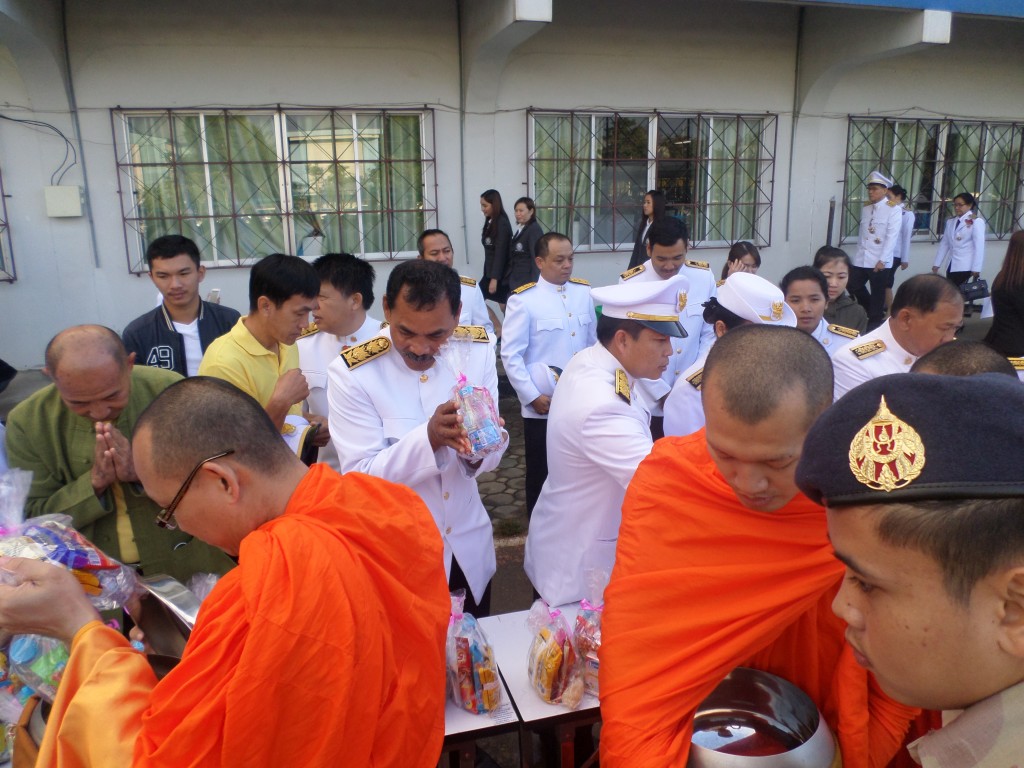 ภาคเช้าร่วมพิธีทำบุญตักบาตรเพื่อถวายเป็นพระราชกุศล ,พิธีถวายพระพรชัยมงคล ณ โรงเรียนสามัคคีวิทยาคม