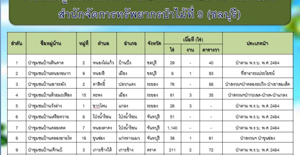 ศูนย์ข้อมูลข่าวสารของราชการ สำนักจัดการทรัพยากรป่าไม้ที่ ๙ (ชลบุรี)