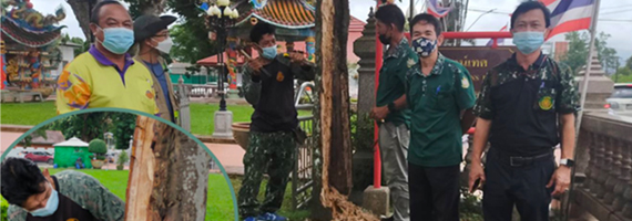 วันที่ 29-30 กรกฎาคม 2564 ทีมงานรุกขกร สำนักจัดการทรัพยากรป่าไม้ที่ 9 (ชลบุรี) ดำเนินการบำรุง ดูแล รักษา ต้นจันทน์เทศ (Myristica Fragrans Houtt) ต้นไม้ทรงปลูกในพระบาทสมเด็จพระเจ้าอยู่หัวราชกาลที่ 10 ซึ่งทรงปลูกไว้เมื่อวันที่ 17 ตุลาคม 2527 ณ บริเวณหน้าศาลาหลักเมือง จังหวัดจันทบุรี โดยลำต้นจันทน์เทศมีสภาพเป็นโพรง คงเหลือเนื้อไม้ เปลือก และกระพี้ ประมาณ 25-30% จึงได้ทำการรักษาโดยการผูกตะแกรงกรงไก่ ฉาบปูนปิดทับ และยึดโยงเชือกเพื่อป้องกันการหักโค่น โดยทีมงานรุกขกรจะเข้าไปตรวจสอบผลการรักษาอีกครั้งในต้นเดือนสิงหาคม พ.ศ. 2564