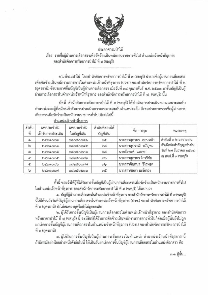 ประกาศกรมป่าไม้ เรื่อง รายชื่อผู้ผ่านการเลือกสรรเพื่อจัดจ้างเป็นพนักงานราชการทั่วไป ตำแหน่งเจ้าหน้าที่ธุรการ ของสำนักจัดการทรัพยากรป่าไม้ที่ 9 (ชลบุรี) วันที่ 22 ธันวาคม พ.ศ. 2564 ประกาศกรมป่าไม้ เรื่อง รายชื่อผู้ผ่านการเลือกสรรเพื่อจัดจ้างเป็นพนักงานราชการทั่วไป ตำแหน่งเจ้าหน้าที่ธุรการ ของสำนักจัดการทรัพยากรป่าไม้ที่ 9 (ชลบุรี) ประกาศ ณ วันที่ 22 ธันวาคม พ.ศ. 2564 (ดาวน์โหลดเอกสาร)