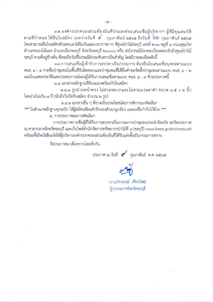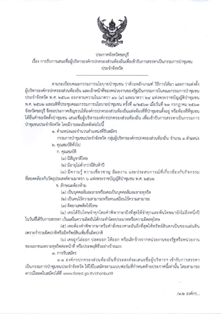 ประกาศจังหวัดชลบุรี เรื่อง การรับการเสนอชื่อผู้บริหารองค์กรปกครองส่วนท้องถิ่นเพื่อเข้ารับการสรรหาเป็นกรรมการป่าชุมชนประจำจังหวัด วันที่ 9 กุมภาพันธ์ พ.ศ. 2565 ประกาศจังหวัดชลบุรี เรื่อง การรับการเสนอชื่อผู้บริหารองค์กรปกครองส่วนท้องถิ่นเพื่อเข้ารับการสรรหาเป็นกรรมการป่าชุมชนประจำจังหวัด ประกาศ ณ วันที่ 9 กุมภาพันธ์ พ.ศ. 2565 (ดาวน์โหลดเอกสาร)