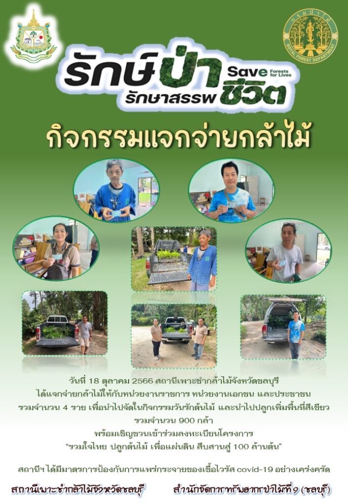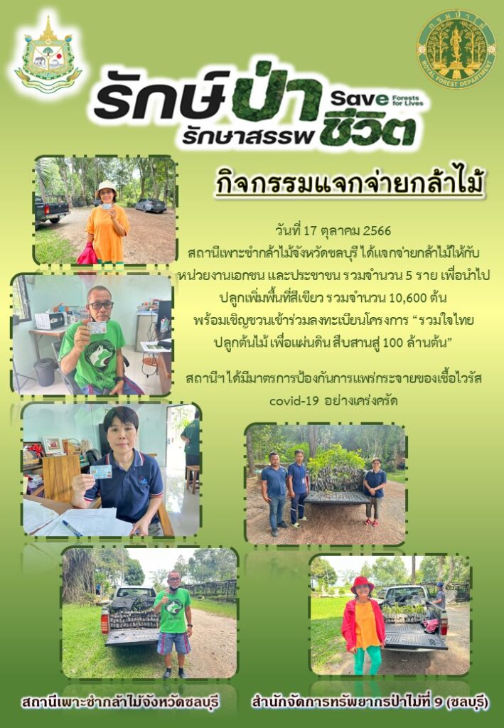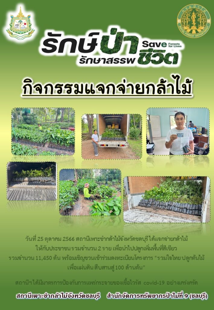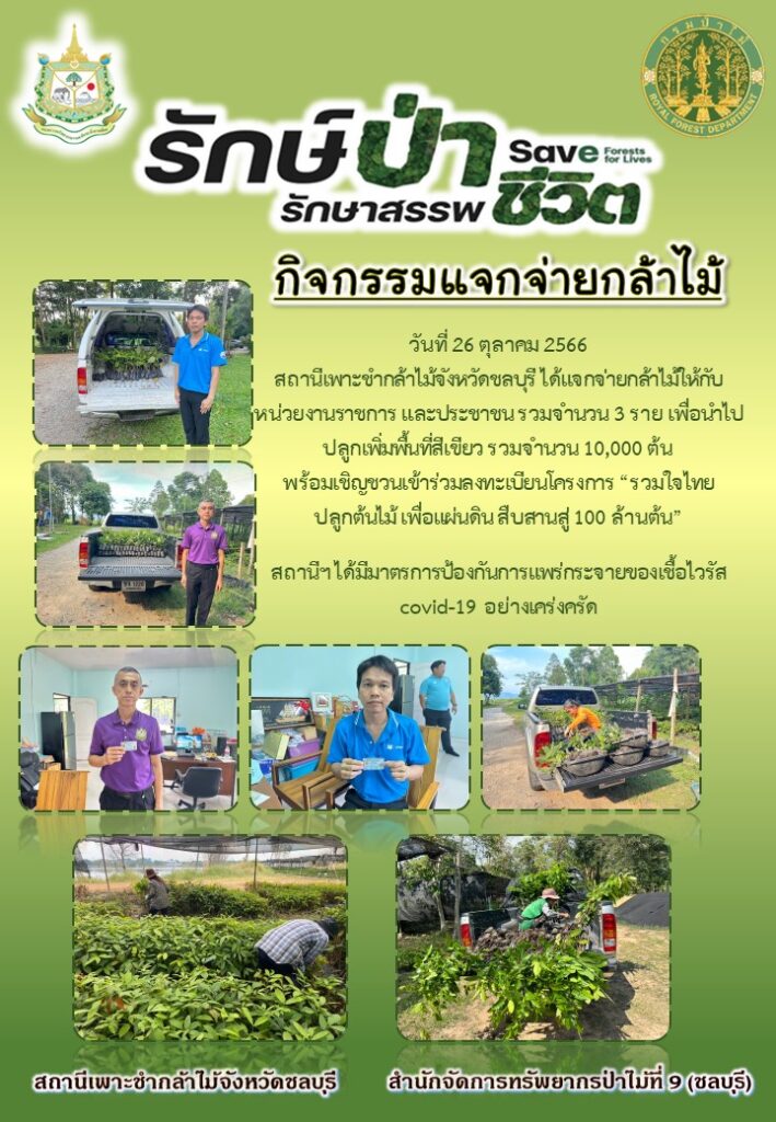 สถานีเพาะชำกล้าไม้จังหวัดชลบุรี ได้แจกจ่ายกล้าไม้ให้กับหน่วยงานเอกชน เพื่อนำไปปลูกเพิ่มพื้นที่สีเขียว รวมจำนวน 3,548 ต้น