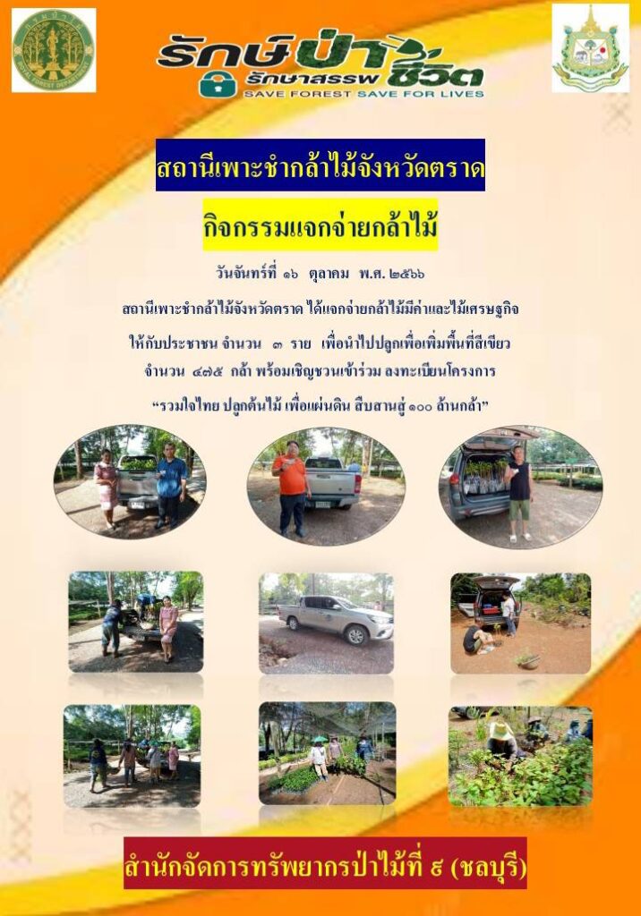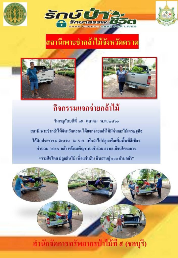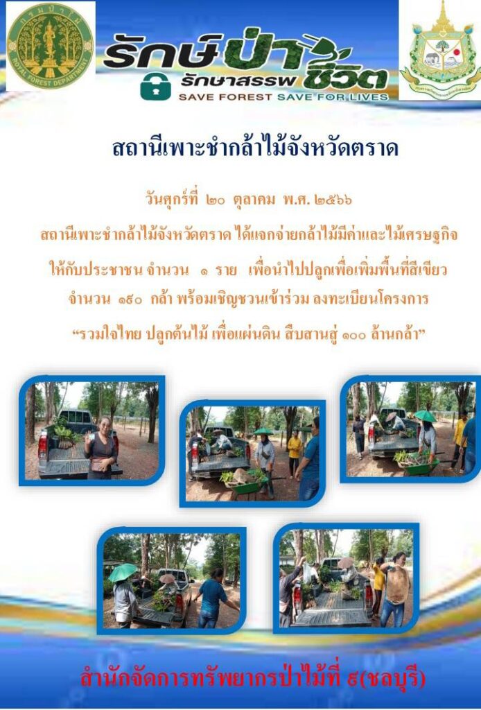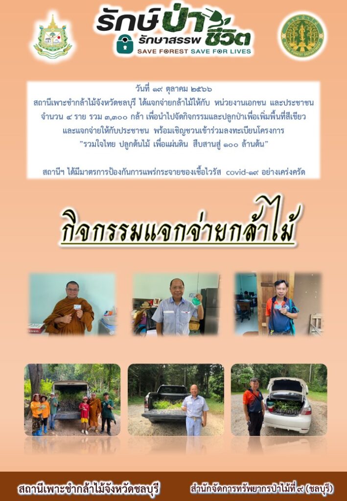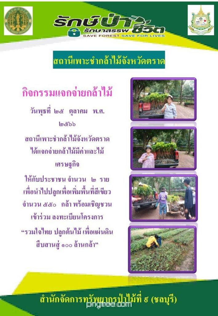 สถานีเพาะชำกล้าไม้จังหวัดชลบุรี ได้แจกจ่ายกล้าไม้ให้กับหน่วยงานเอกชน เพื่อนำไปปลูกเพิ่มพื้นที่สีเขียว รวมจำนวน 3,548 ต้น