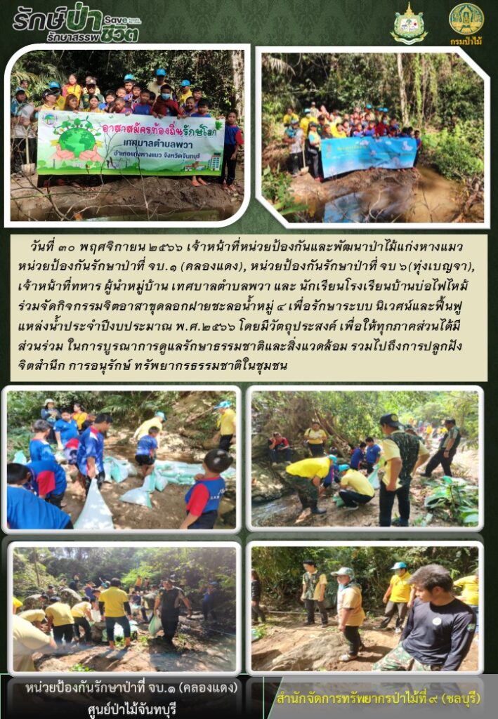 เจ้าหน้าที่หน่วยป้องกันและพัฒนาป่าไม้แก่งหางแมว หน่วยป้องกันรักษาป่าที่ จบ.1 (คลองแดง) หน่วยป้องกันรักษาป่าที่ จบ.6 (ทุ่งเบญจา) เจ้าหน้าที่ทหาร ผู้นำหมู่บ้าน เทศบาลตำบลพวา และนักเรียนโรงเรียนบ้านบ่อไฟไหม้ ร่วมกันจัดกิจกรรมจิตอาสาขุดลอกฝายชะลอน้ำ หมู่ที่ 4 เพื่อรักษาระบบนิเวศน์และฟื้นฟูแหล่งน้ำ พ.ศ. 2566 โดยมีวัตถุประสงค์ เพื่อให้ทุกภาคส่วนได้มีส่วนร่วมในการบูรณาการดูแลรักษาธรรมชาติและสิ่งแวดล้อม รวมไปถึงการปลูกฝังจิตสำนึก การอนุรักษ์ทรัพยากรธรรมชาติในชุมชน