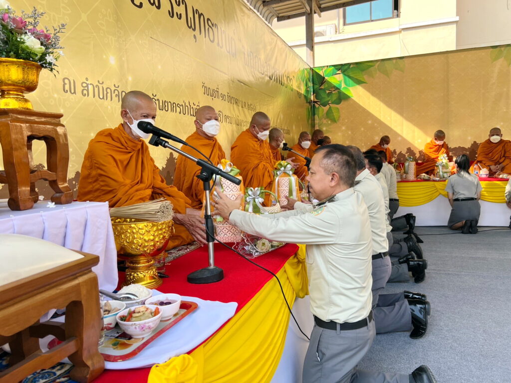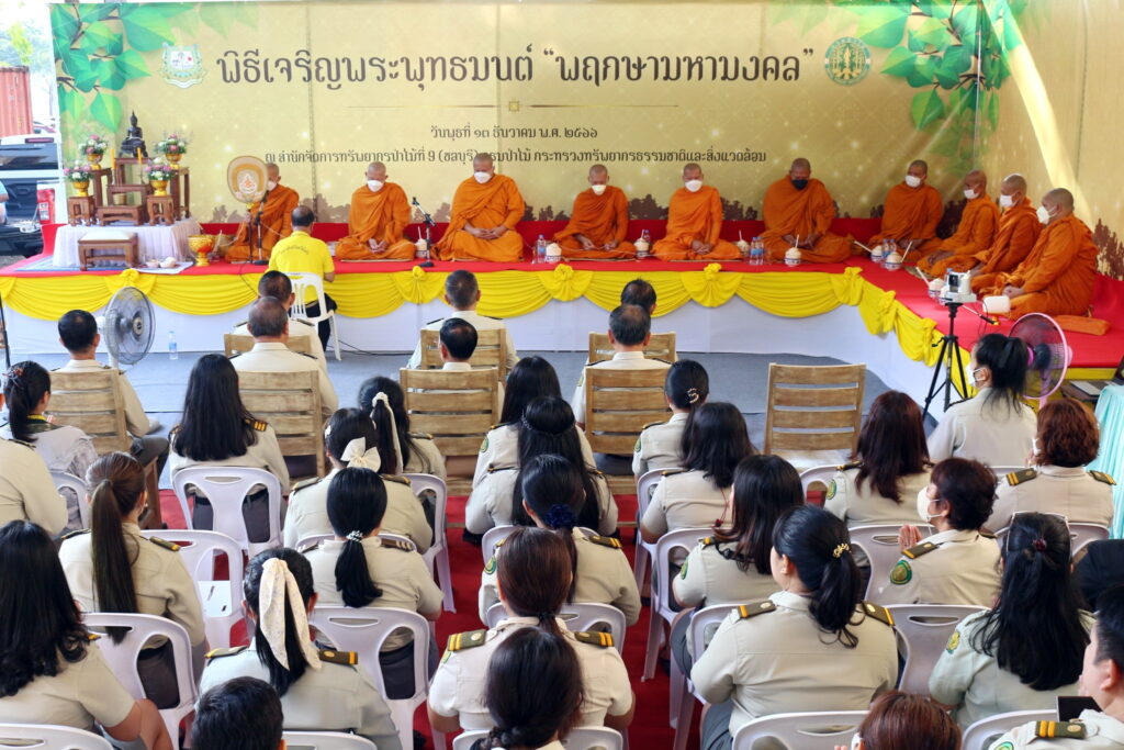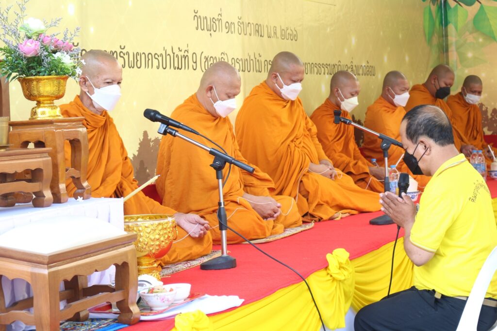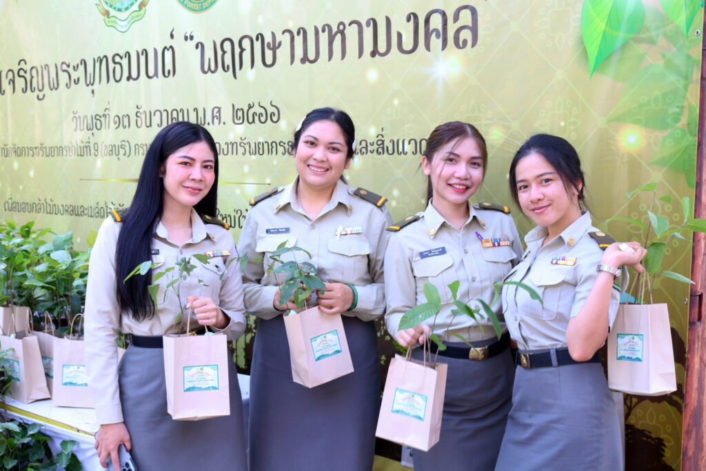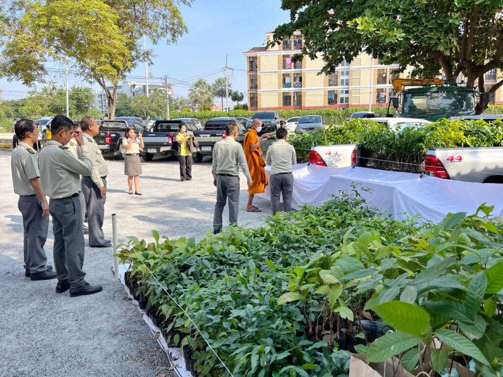 เวลา 09.00 น. นายทศวารณ์ วิทยาคม ผู้อำนวยการสำนักจัดการทรัพยากรป่าไม้ที่ 9 (ชลบุรี) พร้อมเจ้าหน้าที่ในสังกัด ร่วมจัดกิจกรรมโครงการพิธีเจริญพระพุทธมนต์ “พฤกษามหามงคล” โดยมีพระมหาชรัตน์ วฑฺฒนรตโน เจ้าอาวาสวัดศรีพโลทัย และพระสงฆ์รวม 10 รูป เจริญพระพุทธมนต์ เพื่อจัดเตรียมกล้าไม้มงคล สำหรับเป็นของขวัญวันขึ้นปีใหม่ พ.ศ. 2567 ให้แก่ประชาชน 12 ชนิด ได้แก่ ชมพันธุ์ทิพย์ ชะมวง ตะเคียนทอง ทองนพเก้า พะยอม พะยูง ราชพฤกษ์ มะฮอกกานี ยางนา สัก สำรอง และหว้า รวมจำนวน 10,000 กล้า ภายหลังเสร็จสิ้นพิธีจะได้นำกล้าไม้มงคลดังกล่าวไปแจกจ่ายให้กับพี่น้องประชาชนนำไปปลูกเป็นสิริมงคลกับครอบครัวและที่อยู่อาศัย หรือนำไปปลูกตามหน่วยงาน เป็นการเพิ่มพื้นที่สีเขียวต่อไป