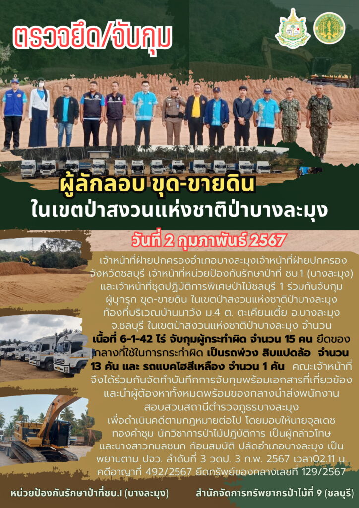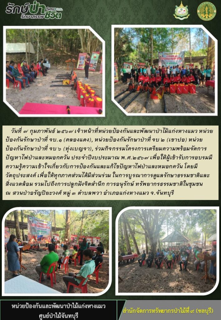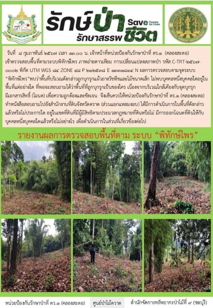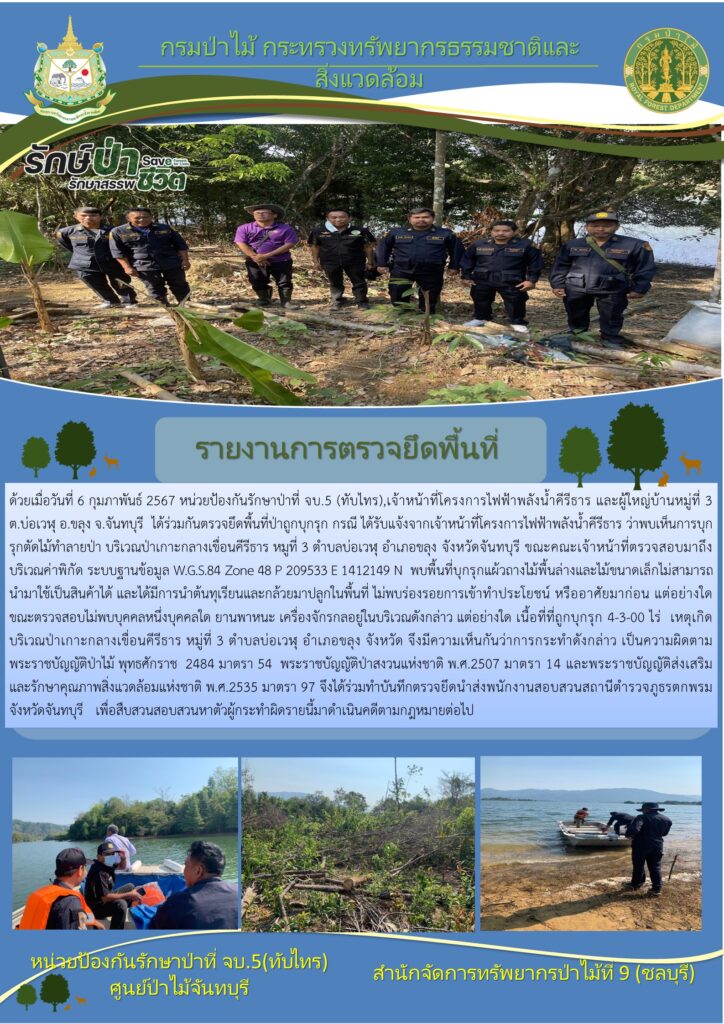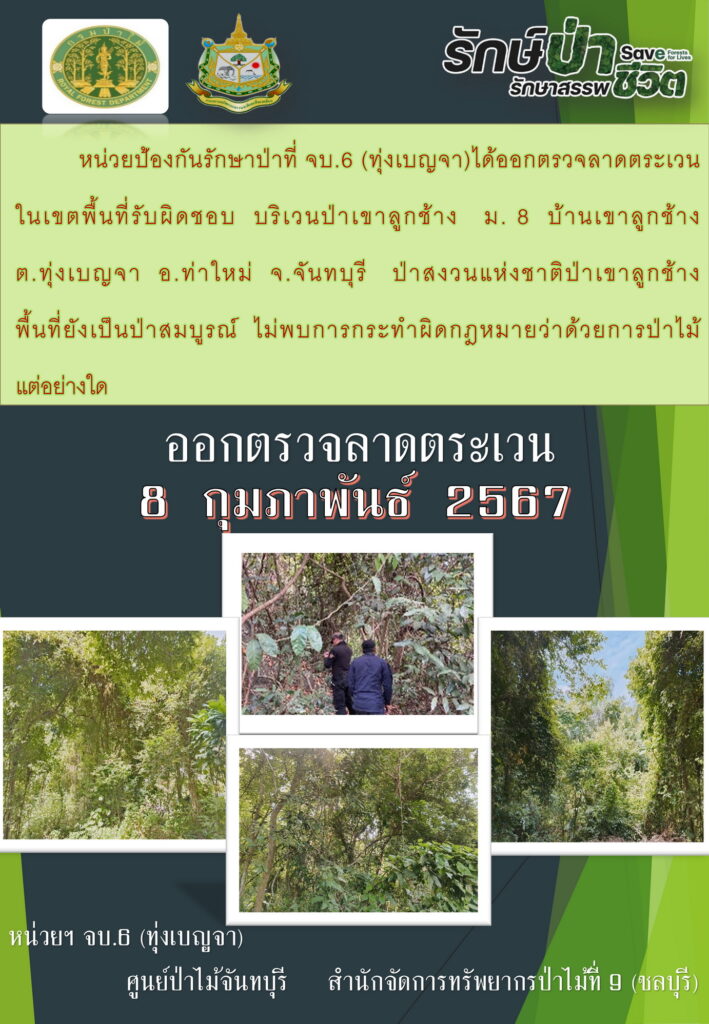 หน่วยป้องกันรักษาป่าที่ จบ.1 (คลองแดง) ออกตรวจลาดตระเวนในเขตป่าสงวนแห่งชาติป่าขุนซ่อง บริเวณป่าเขาคลองเรือแตก บ้านวังอีแอ่น ตำบลพวา อำเภอแก่งหางแมว จังหวัดจันทบุรี