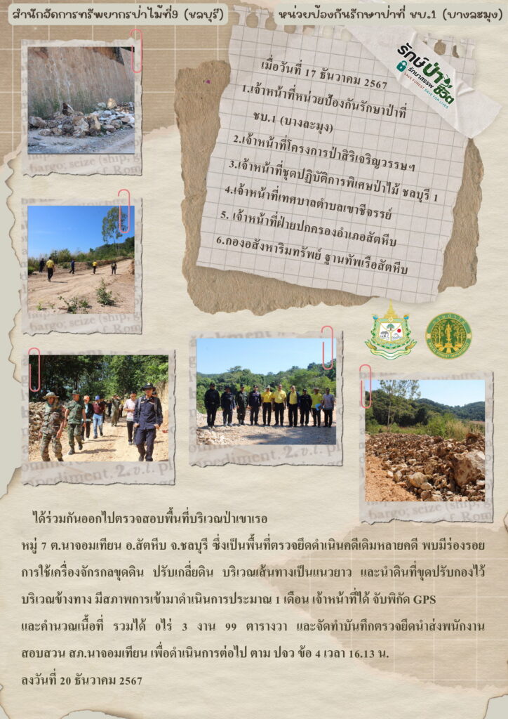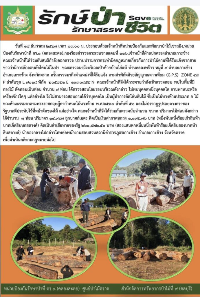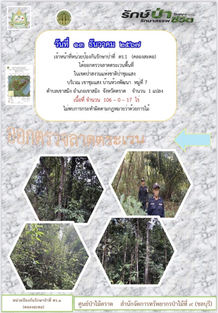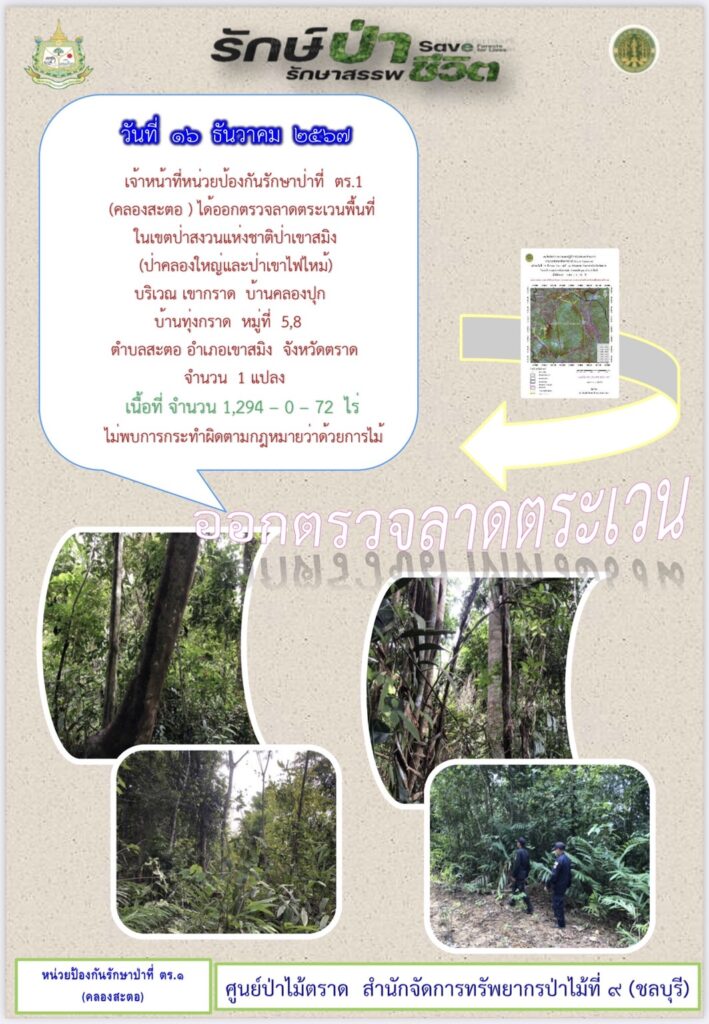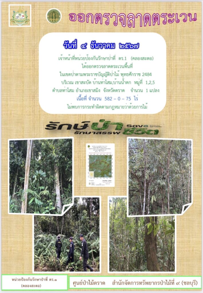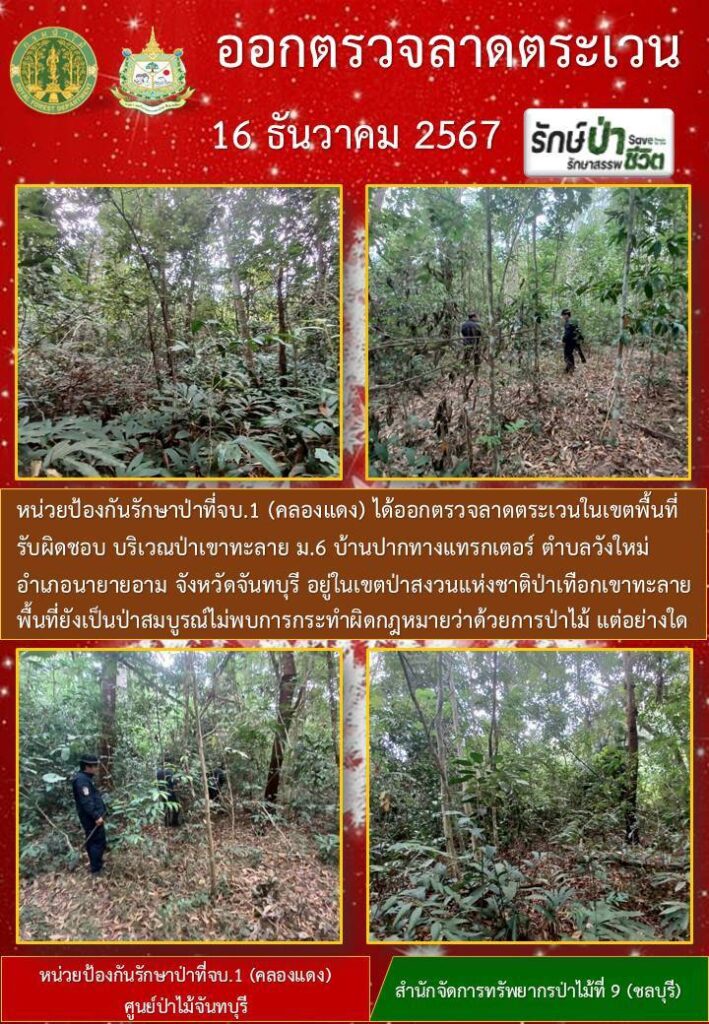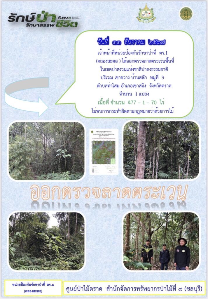 หน่วยป้องกันรักษาป่าที่ จบ.2 (เขาปอ) ออกตรวจลาดตระเวน ป่าสงวนแห่งชาติป่าขุนซ่อง บริเวณป่าเขาไผ่ บ้านบ่อมะเดื่อ หมู่ที่ 9 ตำบลพวา อำเภอแก่งหางแมว จังหวัดจันทบุรี