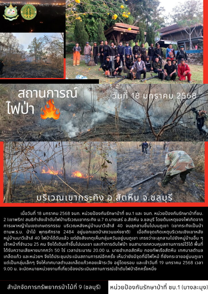 สนธิกำลังเข้าดับไฟป่าบริเวณเขากระทิง
