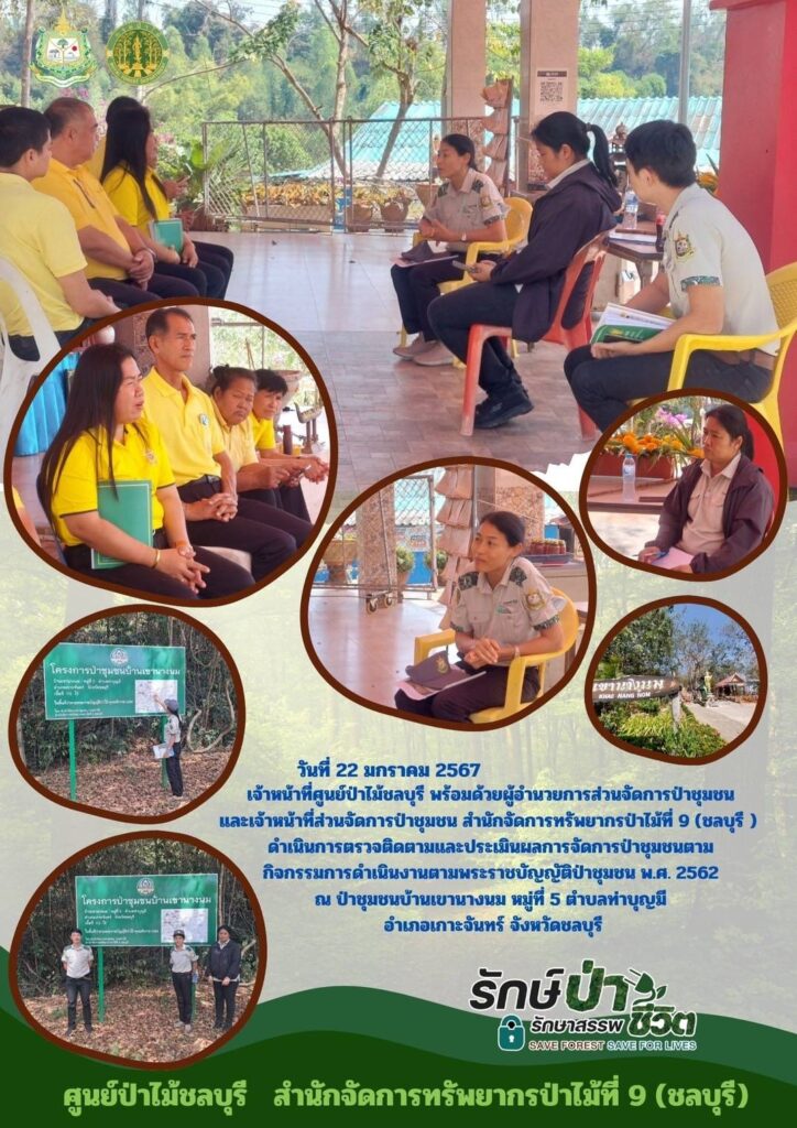 เจ้าหน้าที่ศูนย์ป่าไม้ชลบุรี พร้อมด้วยผู้อำนวยการส่วนจัดการป่าชุมชน สำนักจัดการทรัพยากรป่าไม้ที่ 9 (ชลบุรี) ดำเนินการตรวจติดตามและประเมินผลการจัดการป่าชุมชนตามกิจกรรมการดำเนินงานตามพระราชบัญญัติป่าชุมชน พ.ศ. 2562 ณ ป่าชุมชนบ้านเขานางนม หมู่ที่ 5 ตำบลท่าบุญมี อำเภอเกาะจันทร์ จังหวัดชลบุรี