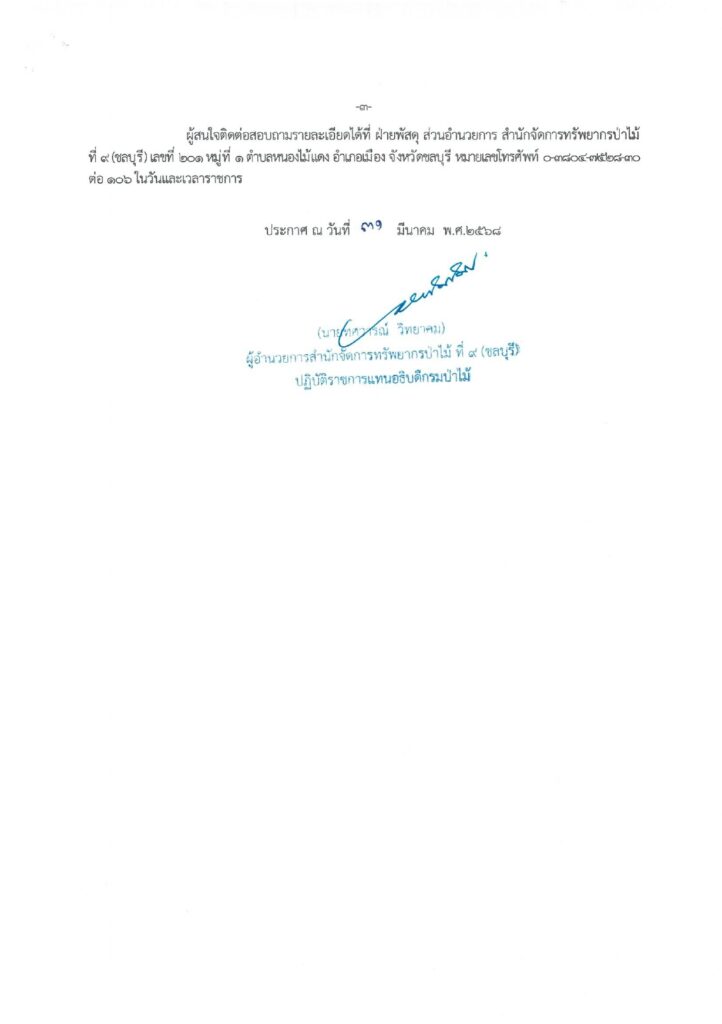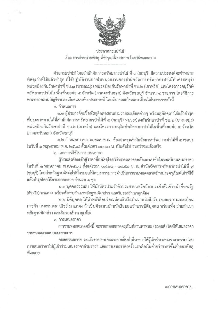 ประกาศกรมป่าไม้ เรื่อง การจำหน่ายพัสดุ ที่ชำรุดเสื่อมสภาพ โดยวิธีทอดตลาด ประกาศ ณ วันที่ 31 มีนาคม พ.ศ. 2568