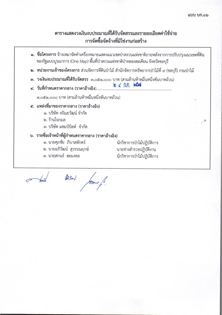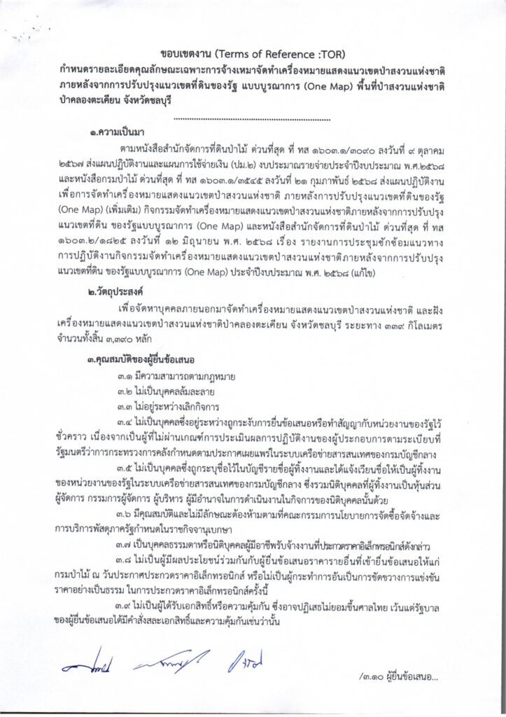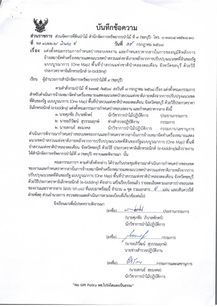เรื่อง จ้างเหมาจัดทำเครื่องหมายแสดงแนวเขตป่าสงวนแห่งชาติภายหลังจากการปรับปรุงแนวเขตที่ดินของรัฐแบบบูรณาการ (One Map) พื้นที่ป่าสงวนแห่งชาติป่าคลองตะเคียน จังหวัดชลบุรี ด้วยวิธีประกวดราคาอิเล็กทรอนิกส์ (e-bidding) ประกาศ ณ วันที่ 24 กรกฎาคม พ.ศ. 2568
