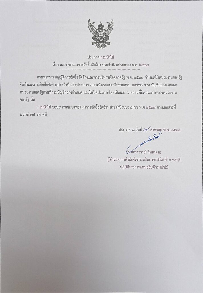 ประกาศกรมป่าไม้ เรื่อง เผยแพร่แผนการจัดซื้อจัดจ้าง ประจำปีงบประมาณ พ.ศ. 2568 วันที่ 14 สิงหาคม 2568 ประกาศกรมป่าไม้ เรื่อง เผยแพร่แผนการจัดซื้อจัดจ้าง ประจำปีงบประมาณ พ.ศ. 2568 ประกาศ ณ วันที่ 14 สิงหาคม พ.ศ. 2568 ดาวน์โหลดเอกสาร PDF