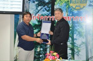 วันที่ 10 มกราคม 2560.นายไพศาล ธนะเพิ่มพูล.ผู้อำนวยการสำนักจัดการทรัพยากรป่าไม้ที่9 (ชลบุรี) มอบโล่รางวัลป่าชุมชนที่ชนะเลิศระดับจังหวัดและรางวัลชมเชย ให้กับตัวแทนป่าชุมชน ตามโครงการคนรักษ์ป่า ป่ารักชุมชน ประจำปี 2559