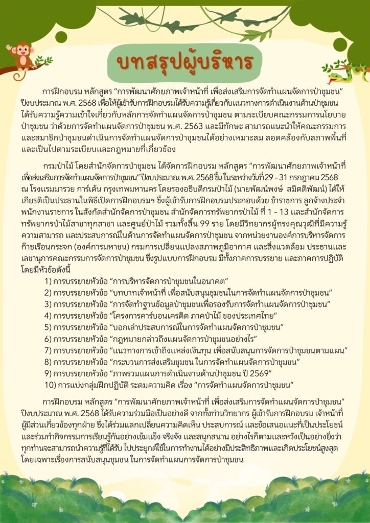 รายงานโครงการฝึกอบรม หลักสูตร “การพัฒนาศักยภาพเจ้าหน้าที่ เพื่อส่งเสริมการจัดทำแผนจัดการป่าชุมชน” ปีงบประมาณ พ.ศ. 2568 รายงานโครงการฝึกอบรม หลักสูตร “การพัฒนาศักยภาพเจ้าหน้าที่ เพื่อส่งเสริมการจัดทำแผนจัดการป่าชุมชน” ปีงบประมาณ พ.ศ. 2568 .