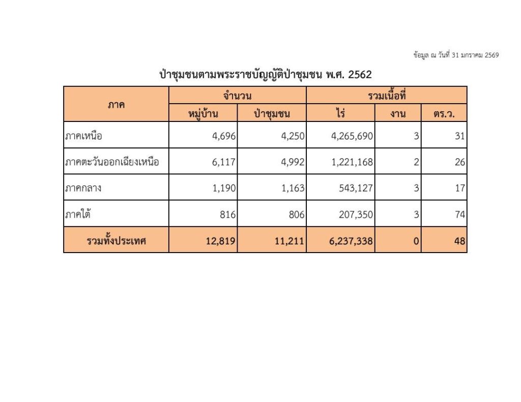 ป่าชุมชนชุมชนตามพระราชบัญญัติป่าชุมชน พ.ศ. 2562 (ข้อมูล ณ วันที่ 31 มกราคม 2569)
