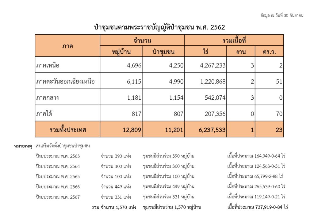 ป่าชุมชนชุมชนตามพระราชบัญญัติป่าชุมชน พ.ศ. 2562 (ข้อมูล ณ วันที่ 30 กันยายน 2568)