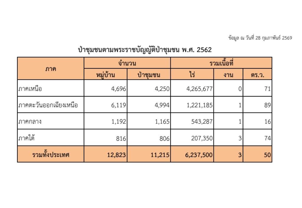 ป่าชุมชนชุมชนตามพระราชบัญญัติป่าชุมชน พ.ศ. 2562 (ข้อมูล ณ วันที่ 28 กุมภาพันธ์ 2569)