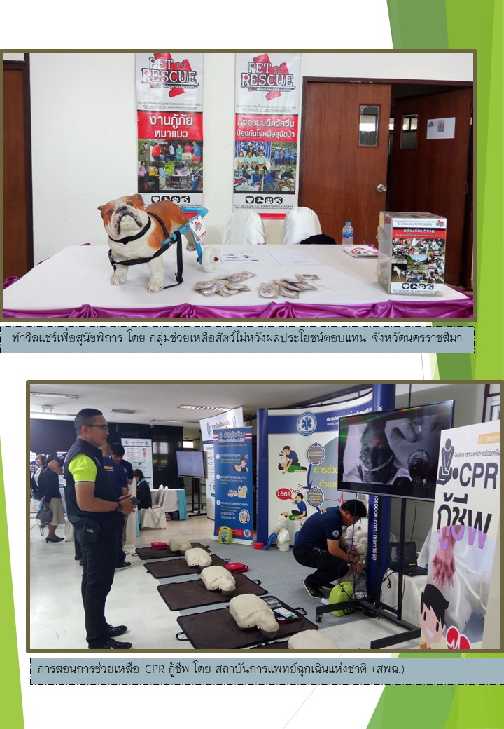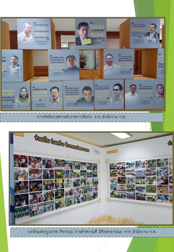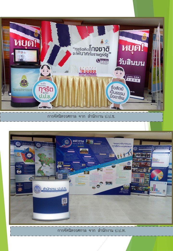 nnnnnนอกจากนี้ ยังมีนิทรรศการของ Merit Team ของสำนักงาน ก.พ. , สำนักงาน ป.ป.ช. , ศูนย์คุณธรรม (องค์การมหาชน) และสำนักงาน ป.ป.ท. และมีกิจกรรม “จิตสาธารณะ เราทำได้” โดยให้ผู้ที่เข้าร่วมงานได้ร่วมบริจาคโลหิต โดยศูนย์บริจาคโลหิต สภากาชาดไทย , อ่านหนังสือเสียงเพื่อผู้พิการทางสายตา โดยมูลนิธิคนตาบอดไทย , ทำวีลแชร์เพื่อสุนัขพิการ โดย กลุ่มช่วยเหลือสัตว์ไม่หวังผลประโยชน์ตอบแทน จังหวัดนครราชสีมา และสอนการช่วยเหลือ CPR กู้ชีพ โดย สถาบันการแพทย์ฉุกเฉินแห่งชาติ (สพฉ.)