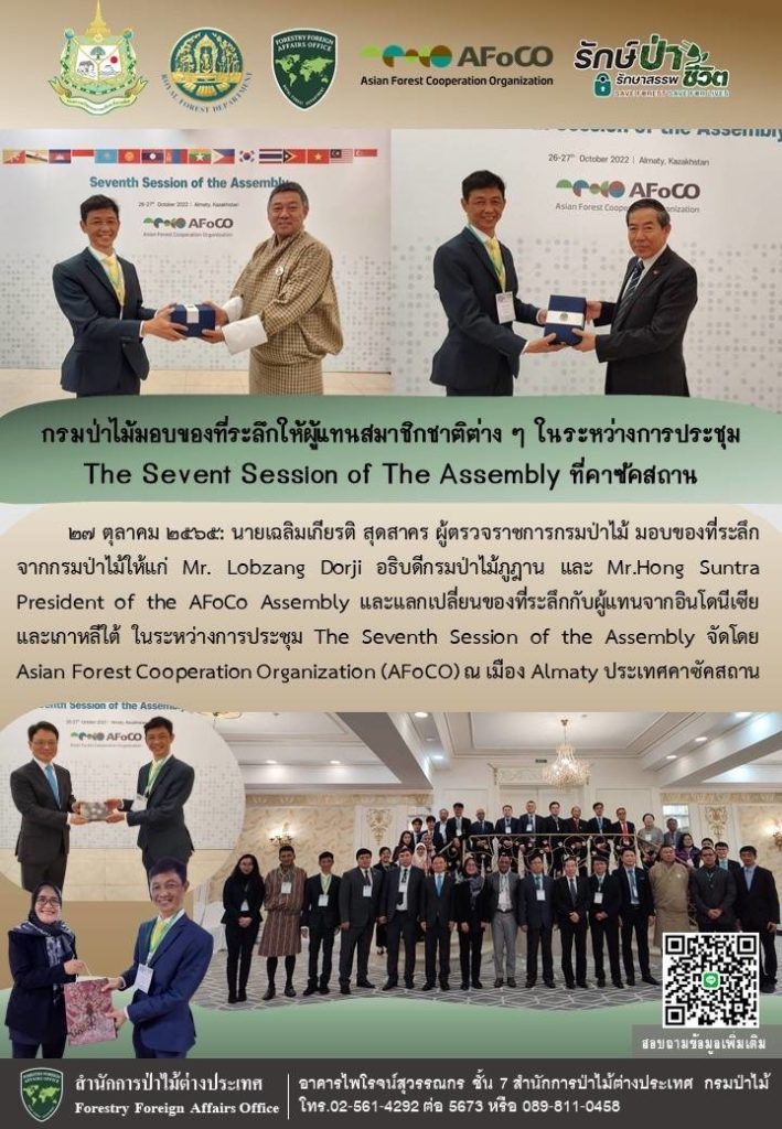 กรมป่าไม้มอบของที่ระลึกให้ผู้แทนสมาชิกชาติต่างๆ ในระหว่างการประชุม The Sevent Cession Of The Assembly ที่คาซัคสถาน01 Nov 2022 in onepage by sasima