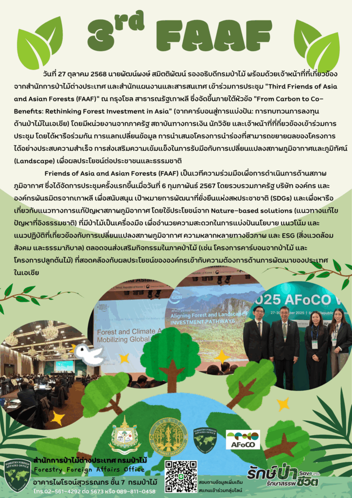 วันที่ 27 ตุลาคม 2568 การประชุม 3rd Friends of Asia and Asian Forests Forum (FAAF)