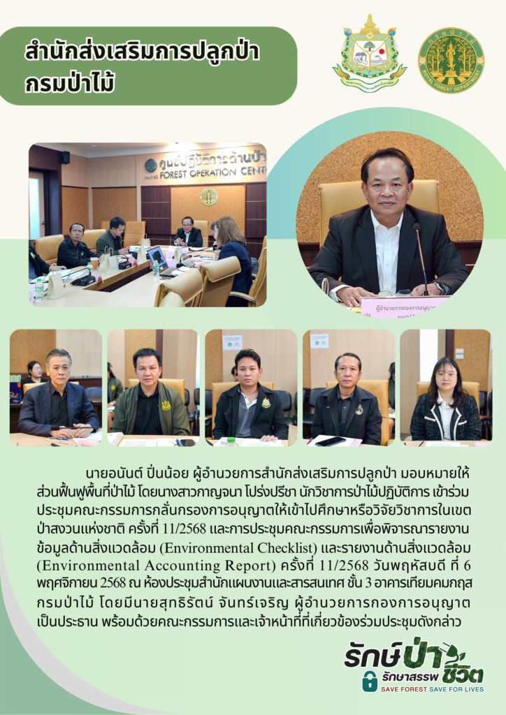 ประชุมคณะกรรมการกลั่นกรองการอนุญาตให้เข้าไปศึกษาหรือวิจัยวิชาการในเขตป่าสงวนแห่งชาติ ครั้งที่ 11/2568 และการประชุมคณะกรรมการเพื่อพิจารณารายงานข้อมูลด้านสิ่งแวดล้อม และรายงานด้านสิ่งแวดล้อม ครั้งที่ 11/2568