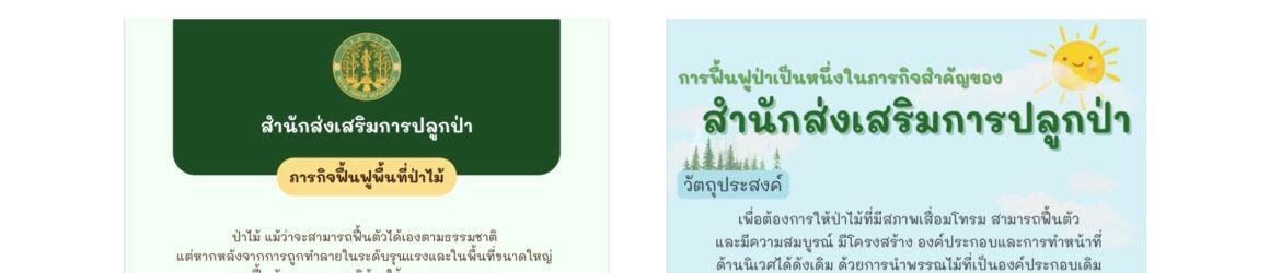 องค์ความรู้ตามภารกิจฟื้นฟูป่า กิจกรรมฟื้นฟูป่า: https://anyflip.com/fxttx/drap/ ขั้นตอนปฏิบัติงานปลูกป่า: https://anyflip.com/fxttx/lcba/