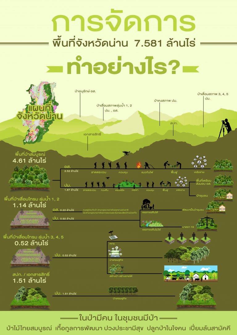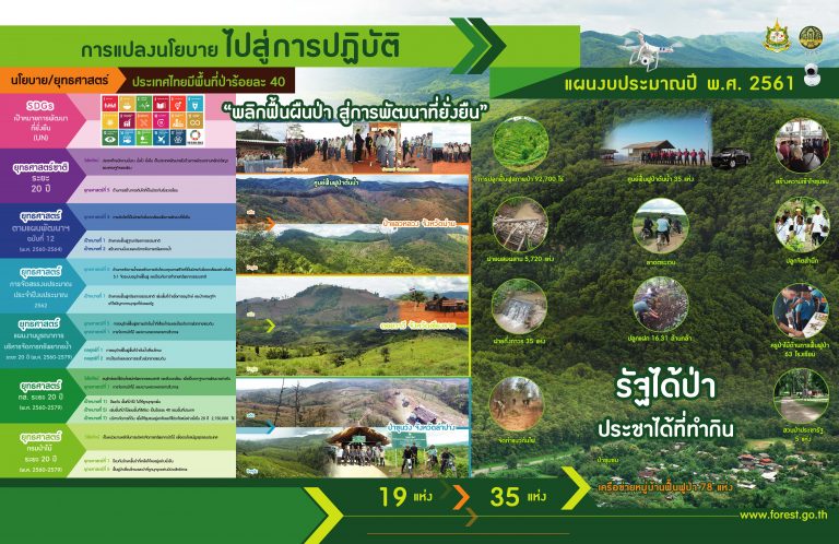 สาระน่ารู้ ป่าชุมชน : การปรับตัวภายใต้ภาวะโลกร้อน การป่าไม้ไทย ก้าวไกลสู่อนาคต ใต้ร่มพระบารมี การแปลงนโยบายไปสู่การปฏิบัติ “พลิกฟื้นผืนป่า สู่การพัฒนาที่ยั่งยืน” การแก้ไขปัญหาที่ดินป่าไม้ และจัดที่ดินให้ผู้ยากไร้ การกักเก็บน้ำของป่าไม้ Model : การจัดการพื้นที่ป่าจังหวัดน่าน 7.581 ล้านไร่ ความหลากหลายทางชีวภาพในผืนป่า ระบบราชการ 4.0 ปัจจัยแห่งความสำเร็จของระบบราชการ ตารางเปรียบเทียบระบบราชการ 4.0