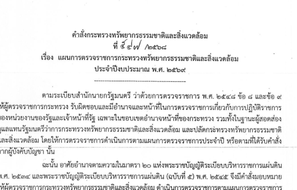 แผนการตรวจราชการ กระทรวงทรัพยากรธรรมชาติและสิ่งแวดล้อม ประจำปีงบประมาณ พ.ศ. 2569