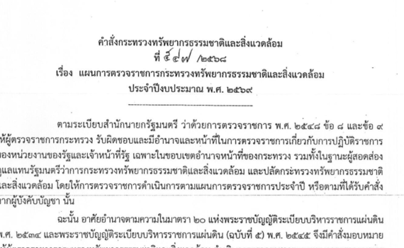 แผนการตรวจราชการ กระทรวงทรัพยากรธรรมชาติและสิ่งแวดล้อม ประจำปีงบประมาณ พ.ศ. 2569