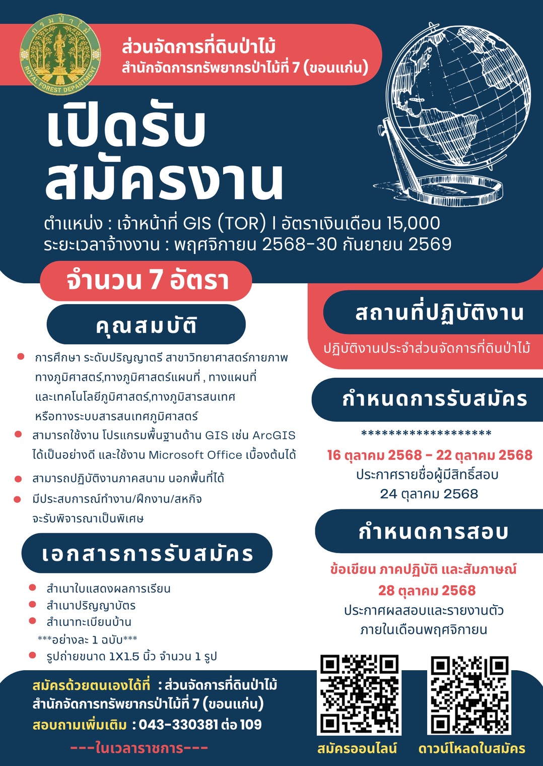 - ประกาศรับสมัครงาน ตำแหน่งเจ้าหน้าที่ GIS (TOR) ดาวน์โหลด ประกาศสมัครงาน