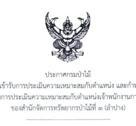 ข่าว ประชาสัมพันธ์ ประกาศกรมป่าไม้ เรื่อง รายชื่อผู้มีสิทธิ์เข้ารับการประเมินความเหมาะสมกับตำแหน่ง และกำหนดวัน เวลา สถานที่ และระเบียบในการประเมินความเหมาะสมกับตำแหน่งเจ้าพนักงานการเงินและบัญชีของสำนักจัดการทรัพยากรป่าไม้ที่ 3 (ลำปาง) […]