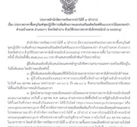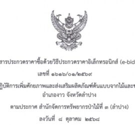 จัดซื้อจัดจ้าง เอกสารประกวดราคาซื้อด้วยวิธีประกวดราคาอิเล็กทรอนิกส์ (e-bidding) เลขที่ 1616/01/2569 การซื้อครุภัณฑ์ชุดปฏิบัติการเพิ่มศักยภาพและส่งเสริมผลิตภัณฑ์ต้นแบบจากไม้และของป่า ตำบลบ้านหวด อำเภองาว จังหวัดลำปาง ประจำปีงบประมาณ พ.ศ.2569 วันที่ 8 ตุลาคม 2568 […]