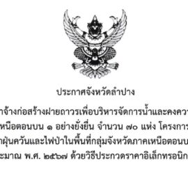 จัดซื้อจัดจ้าง ประกาศจังหวัดลำปาง เรื่อง ประกวดราคาจ้างก่อสร้างฝายถาวรเพื่อบริหารจัดการน้ำและคงความชุ่มชื่นให้ผืนป่า กลุ่มจังหวัดภาคเหนือตอนบน 1 อย่างยั่งยืน จำนวน 70 แห่ง […]